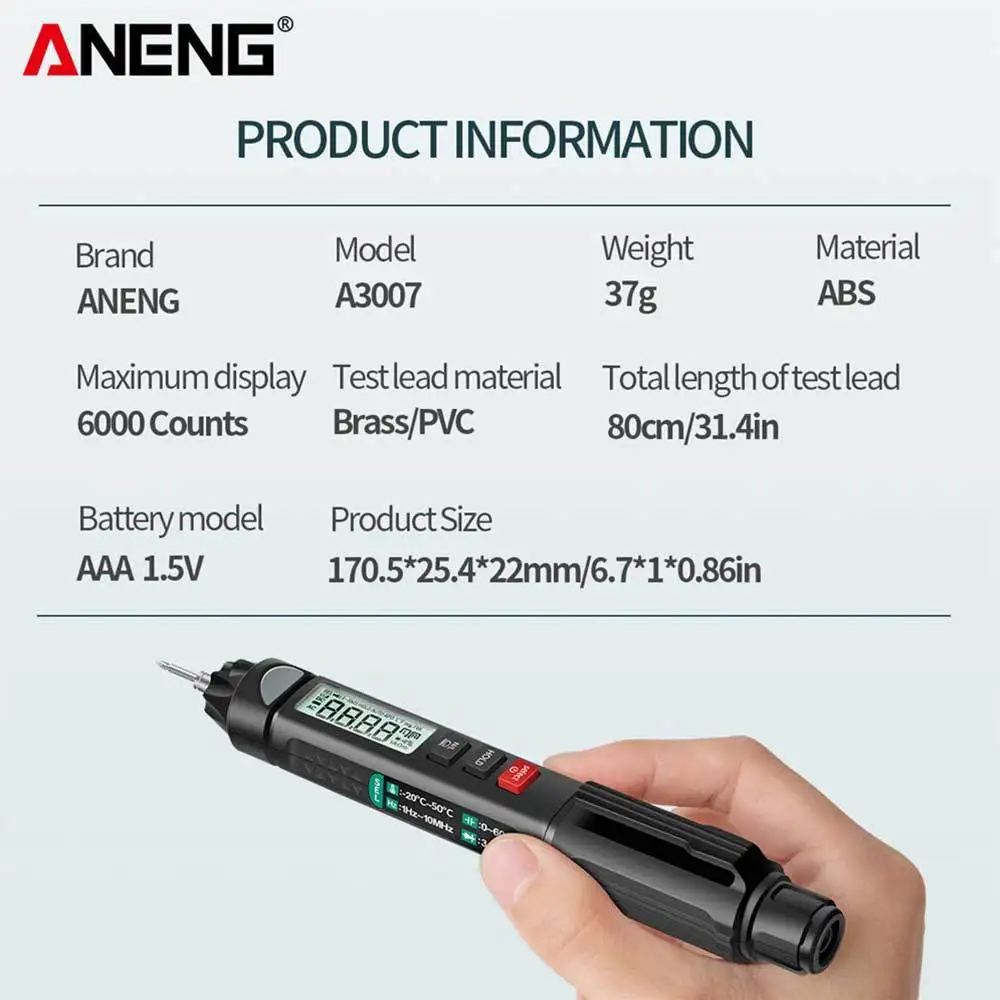 1. 6000 штук-это карманное 3 5/6 цифр истинное эффективное значение, умный мультиметр в форме ручки, не нужно поворачивать циферблат, чтобы выбрать функцию.