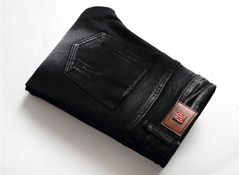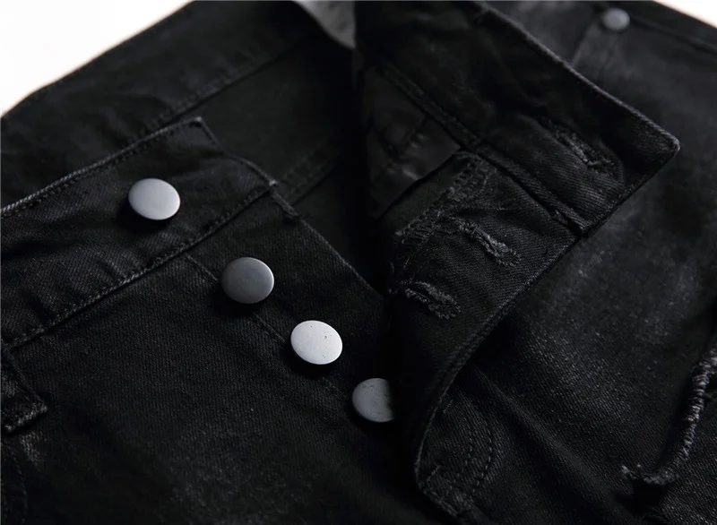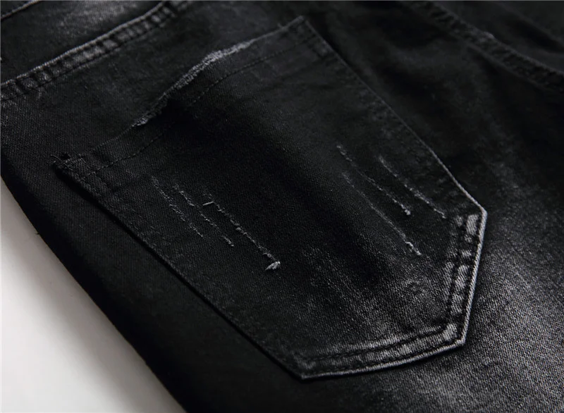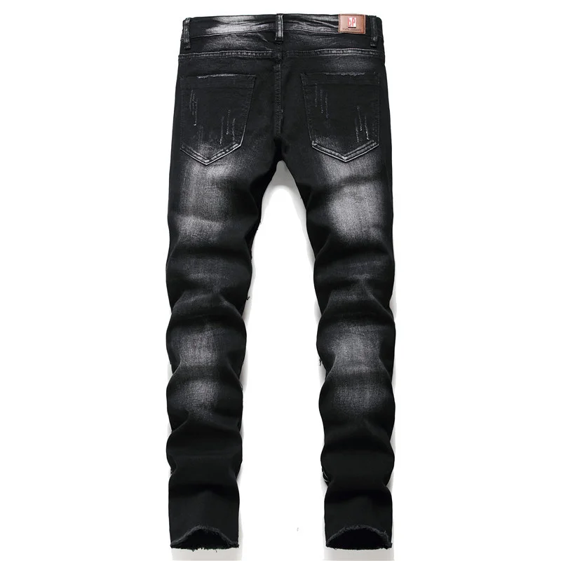 Мужские джинсы с черепом, принт «панк-рок», рваные модные мужские брюки, мужские черные обтягивающие повседневные Стрейчевые хлопковые джинсовые брюки #073