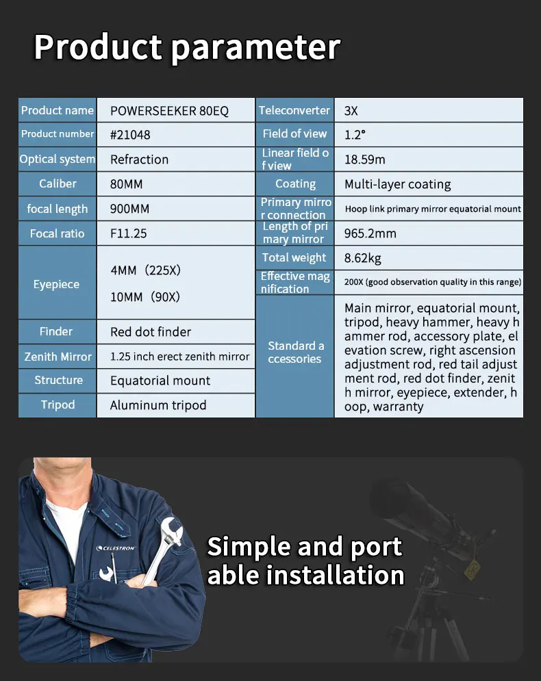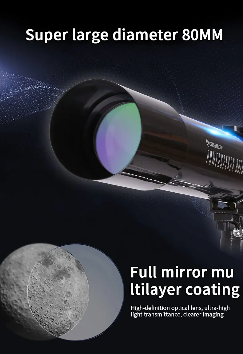 Независимо от того, являетесь ли вы астрономом-любителем или становитесь более комфортным с помощью телескопа, вам понравится технология и удобные для пользователя функции, упакованные в телескоп-рефрактор Celestron's PowerSeeker. Celestron PowerSeeker 80EQ-мощный, но простой в использовании телескоп. Наши телескопы серии Power Seeker для начинающих в астрономии разработаны с сочетанием ценности, качества, мощности и удобных для пользователя функций. Они созданы для улучшения опыта для начинающих, но также являются исключительными для опытных астрономов среднего уровня. Этот телескоп 80EQ имеет мощное увеличение и простое в использовании управление, которое позволяет пользователям получать четкие виды на луну, Кольца Сатурна и галлейские Луны Юпитера.