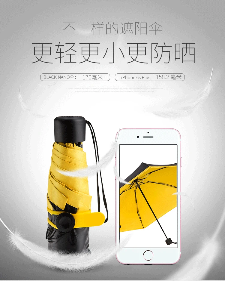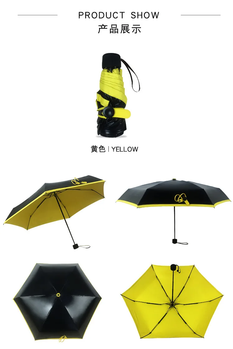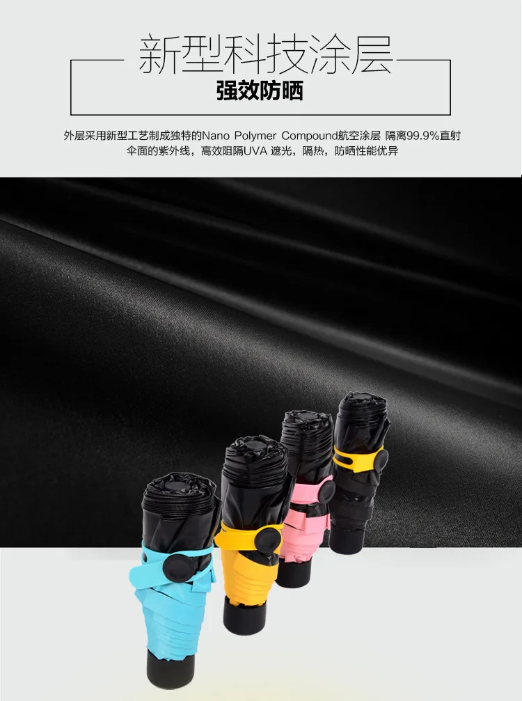 Сверхлегкий маленький складной зонт с карманом черного клея, ветрозащитный солнцезащитный анти-УФ Зонт для женщин, летний зимний зонт