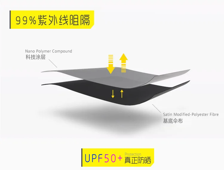 Зонтик ткань принимает новые экологически чистые ткани и добавила защиту окружающей среды анти-УФ агент. Солнцезащитный анти-УФ лучше, чем черный резиновый зонтик.