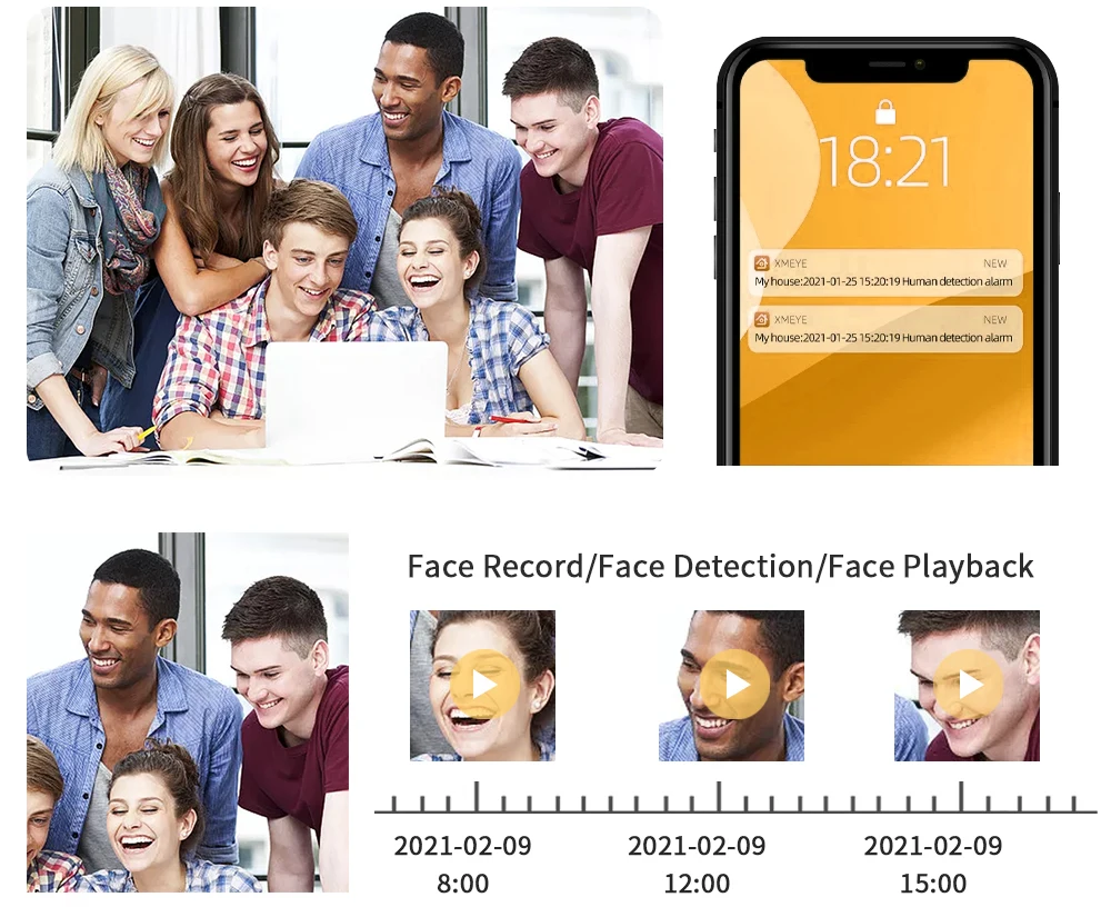 Face Detection and Face playback and Face Record;Face Detection and Face Playback;Quickly capture face images and quickly play back face videos;Face Detection:automatically capture face images;Face Playback:Intelligent Face video playback,saving time,not missing every details.