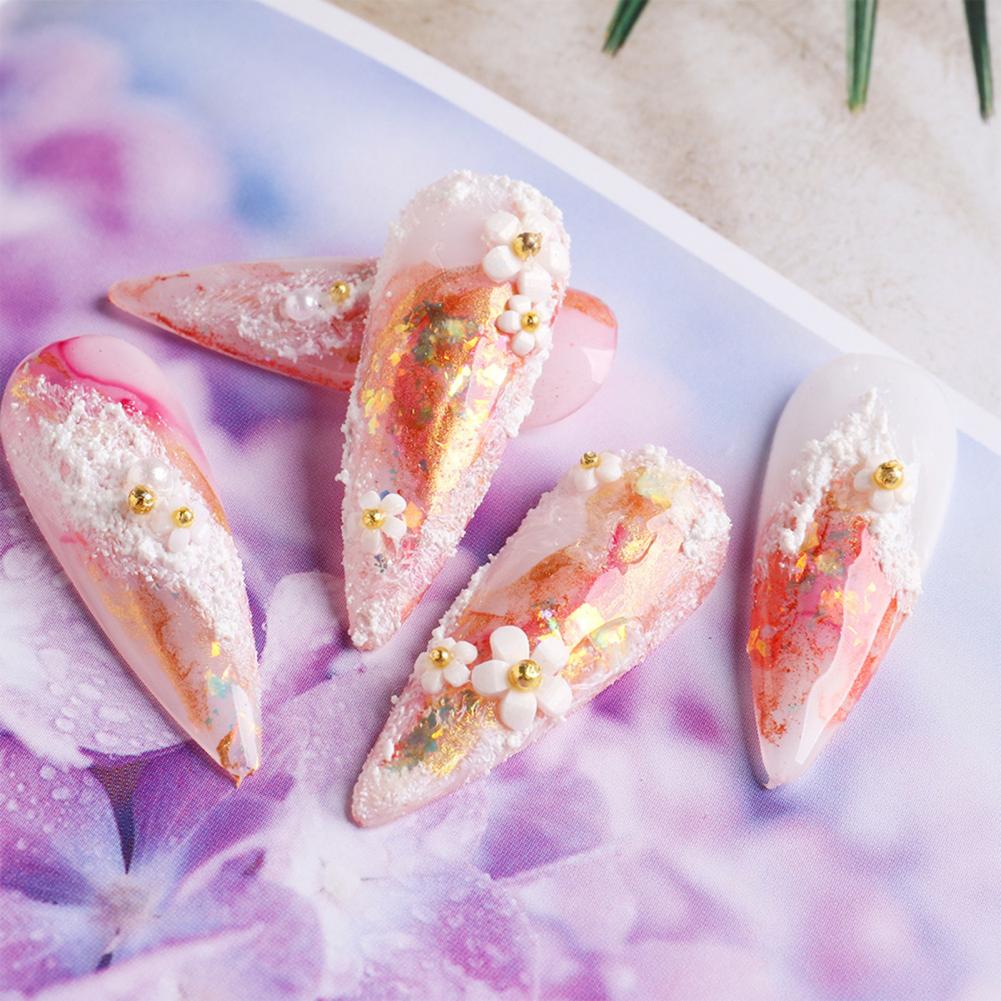 Нет никаких сомнений в том, что эта наклейка для ногтей имеет лучшую производительность на адгезии для приклеивания к ногтям плотно, не выкапывая, с пятью лепестками и рельефными узорами, чтобы показать вашу индивидуальность на свадьбе, вечерние и продолжительные сцены.