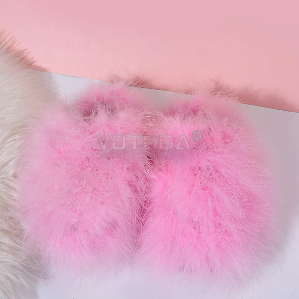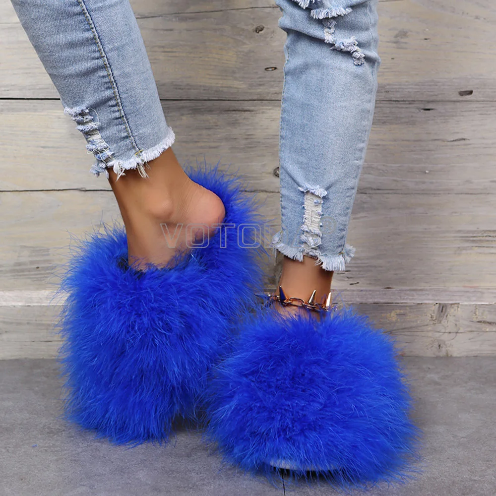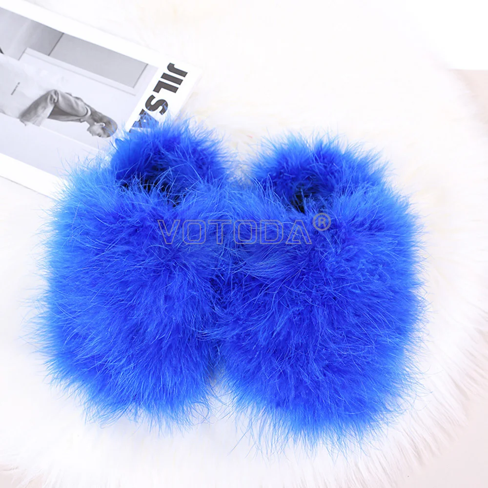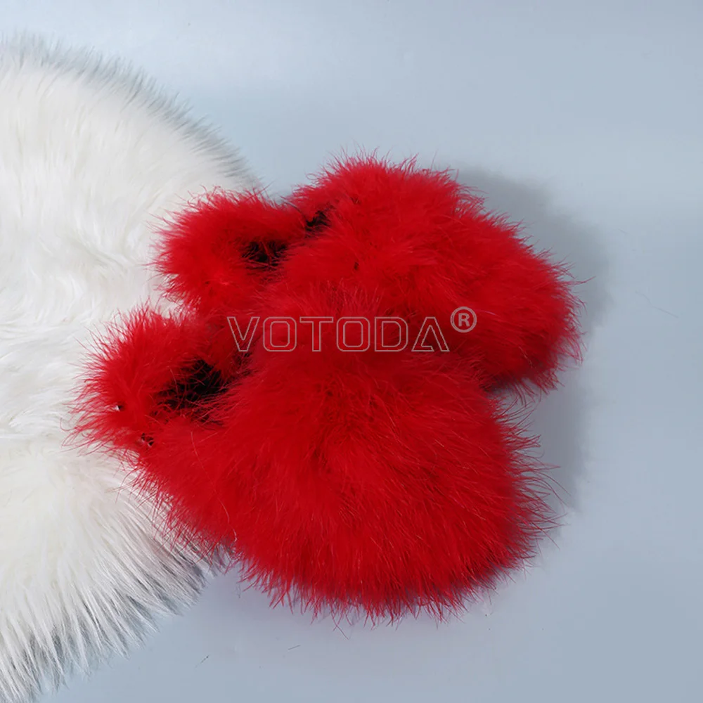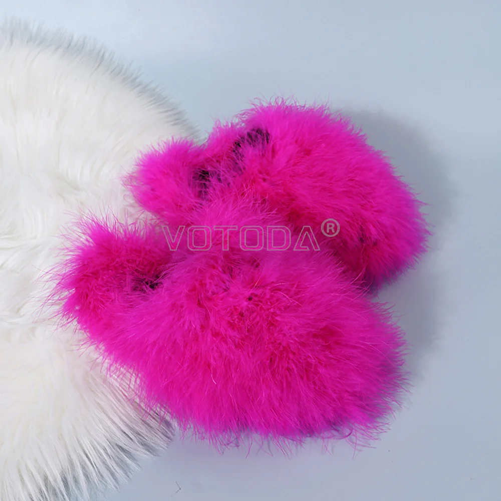 VOTODA/роскошные женские меховые шлепанцы с пушистыми перьями; Плюшевые Вьетнамки; Мягкие домашние теплые тапочки на зиму; Потрясающая женская меховая обувь