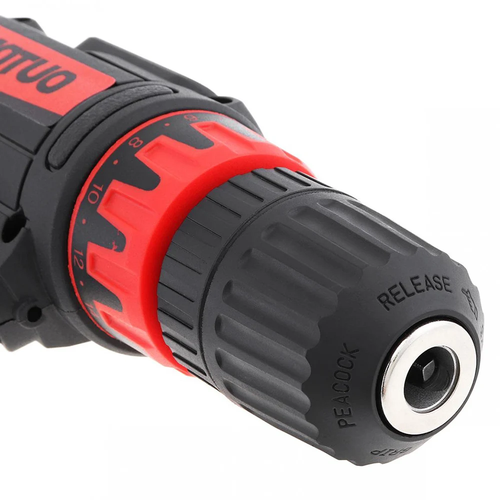 [18 передач сцепления, 2 передачи] электрическая дрель имеет два режима работы, низкая скорость и высокая скорость, и является хорошим партнером для вашей работы. 18-скорости крутящего момента (2-скорость: 0-750RPM-1200RPM) помогает точно в комплекте с широким спектром применений. Будь то ремонт дома, ремонт, поделки своими руками или ремонт автомобиля.