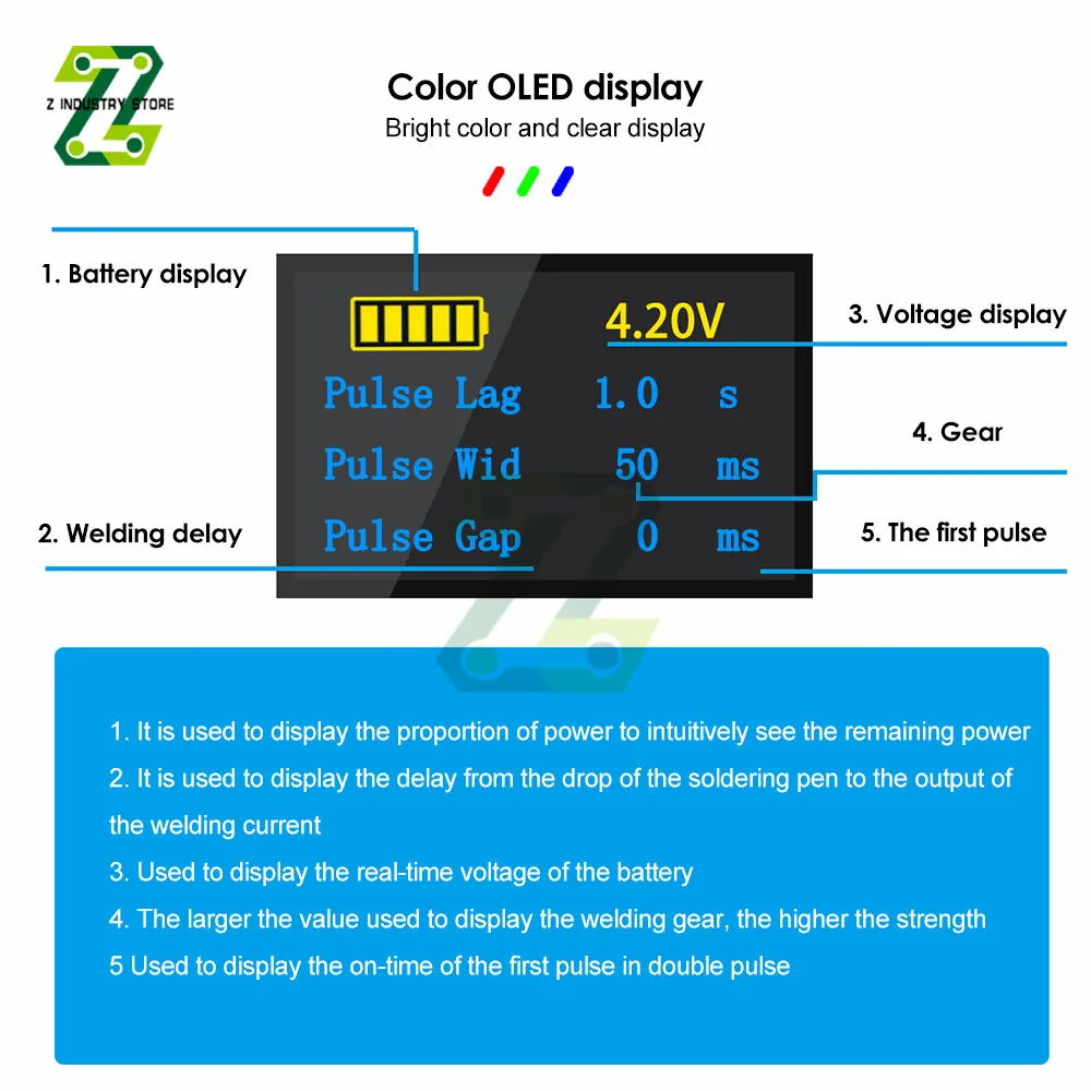 1. Увеличение положения зубчатой передачи: короткое нажатие левой кнопки один раз, чтобы увеличить 5 зубчатых передач (быстрое увеличение-грубая регулировка), в общей сложности 110 зубчатых передач, 110-я Шестерня имеет сильную способность сварки