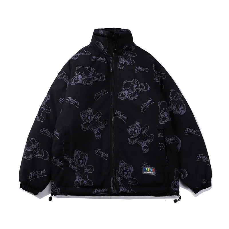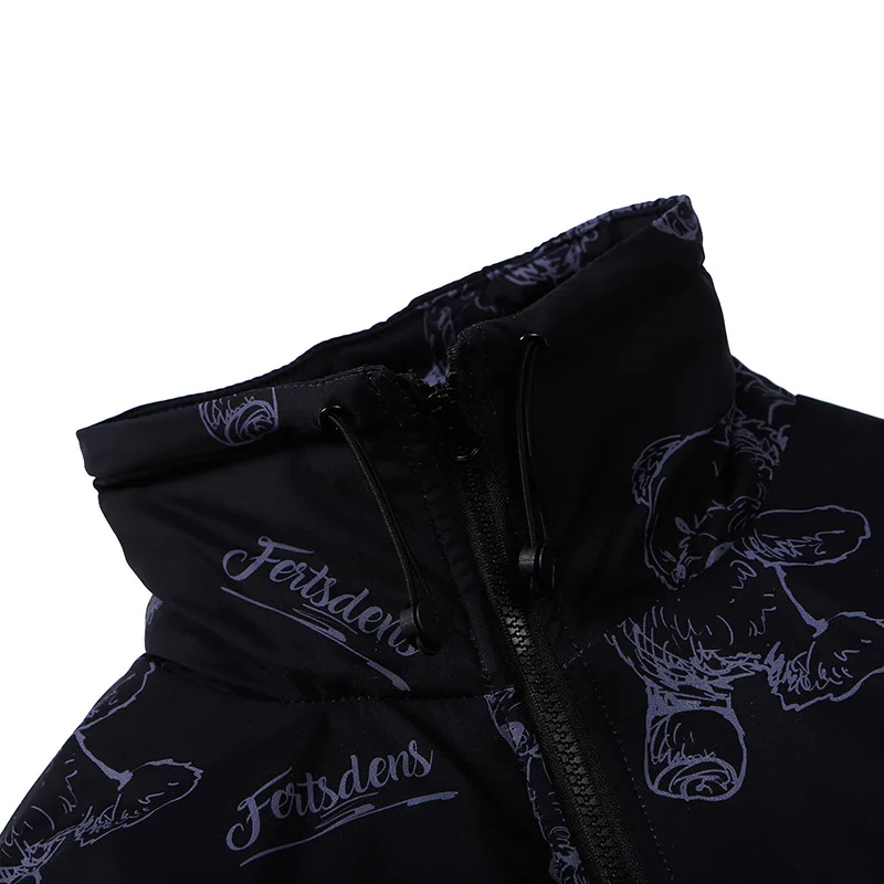 Water Pattern and Letter Print Puffer Jackets for Mens Winter Warm Clothing Plus Size Harajuku Streetwear Loose Fit Bubble Coats | Мужская