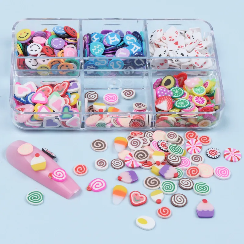 6 сеток/коробка Fimo мягкие глиняные наклейки для ногтей