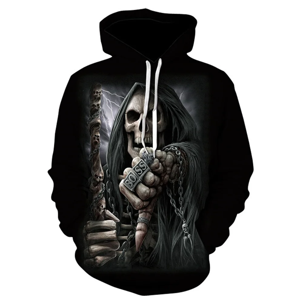 Модная Осенняя мужская толстовка с забавным 3D-принтом черепа уличная одежда