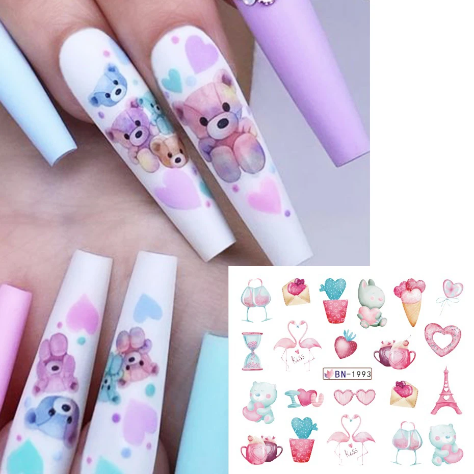 День Святого Валентина водная наклейка для ногтей и наклейка сердце Эйфелева башня розовые блестки для ногтей слайдер для маникюра весенний Маникюр LEBN1993-2004
