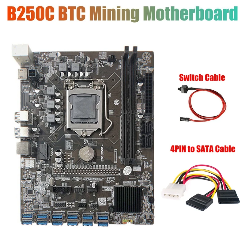 B250 BTC 12P Mining Motherboard Kit G3900 CPU 12 PCI-E16X 12x009S Adapter Card DDR4 Board for Bitcoin Miner | Компьютеры и офис