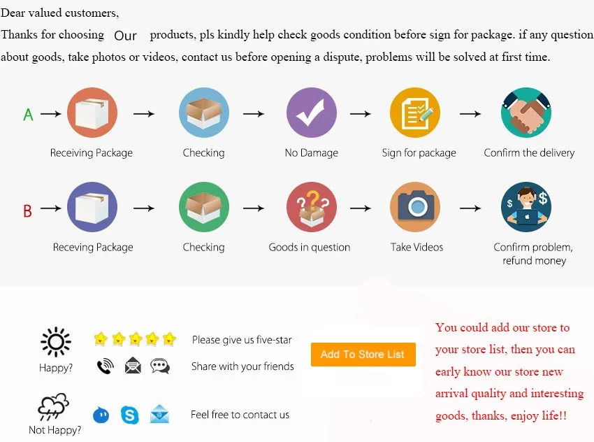 Если вы не удовлетворены товарами, мы принимаем замену и возврат средств. Мы принимаем возмещение или частичное возмещение, если товары имеют проблемы с качеством. Пожалуйста, свяжитесь с нами и верните товар до начала спора: Как отслеживать экспресс-доставку?