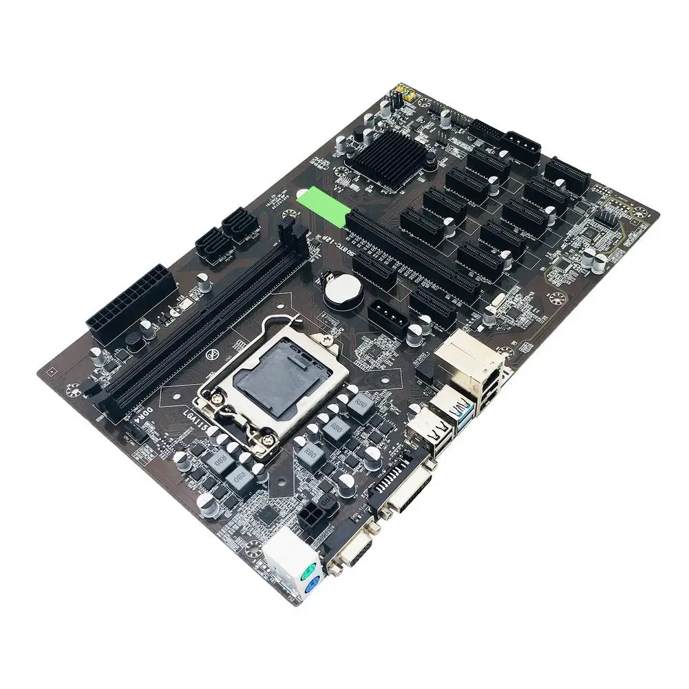 Материнская плата компьютера является B250-BTC дизайном с 12 слотами для видеокарт PCIE до 16 ГБ, поддерживающим Память DDR4 2133/2400/2800/3000 МГц. VGA/DVI и 100 гигабитная LAN с безопасным ядром и защитой от перенапряжения. Обнаружение состояния слота PCIE, которое показывает состояние каждого графического процессора в вашем rig в режиме реального времени.