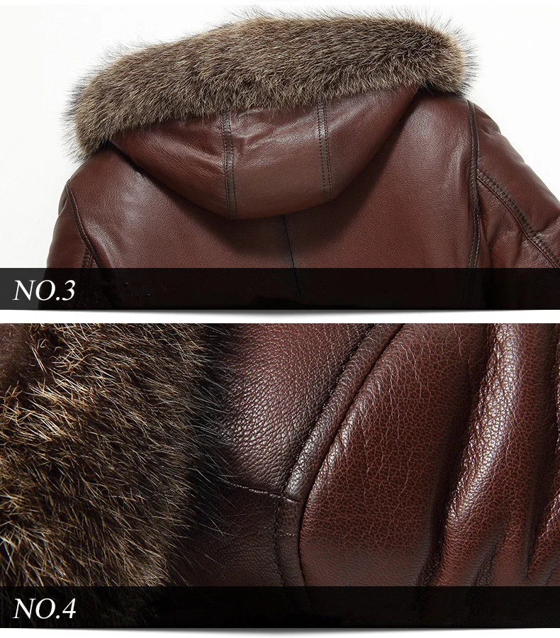 Мужская куртка из натуральной кожи с натуральным мехом енота MY736 | одежда