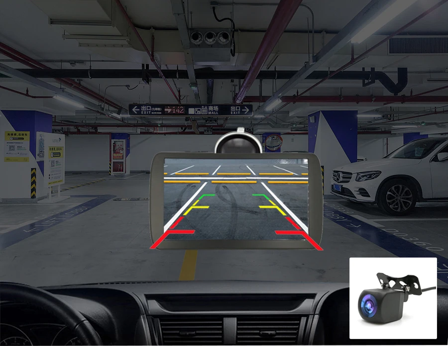 Когда автомобиль находится на заднем ходу, этот Автомобильный видеорегистратор автоматически переключается на изображение камеры заднего вида с помощью линии парковки