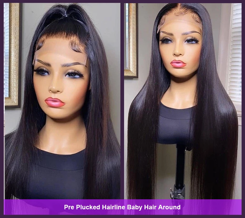 Шелковые прямые парики для женщин, 4x4, 180%, полные толстые прямые парики с Т-образной кружевной передней частью HD
