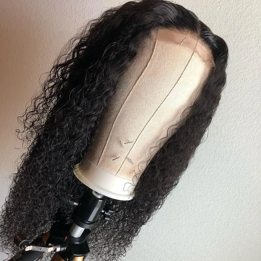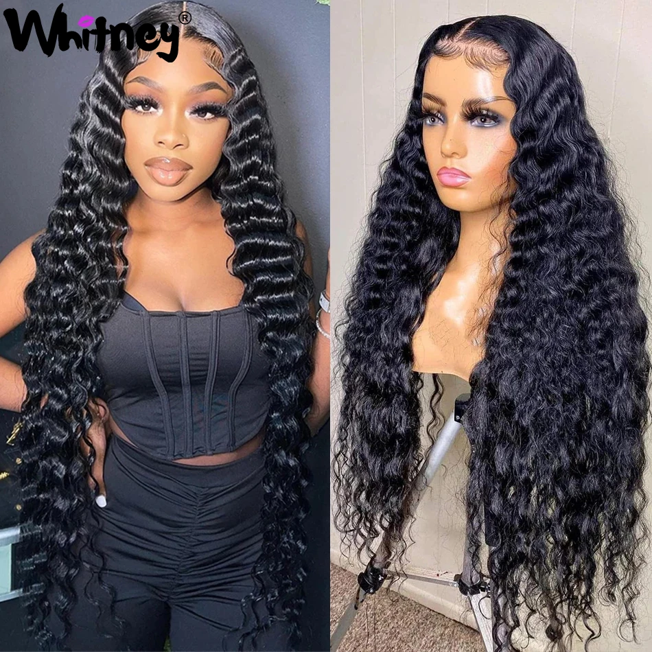 Малайзийские волосы глубокая волна 4x4 кружева Закрытие парики 10А класс волос 100% человеческие волосы глубокий кудрявый дешевые Т-части кружева парики для женщин