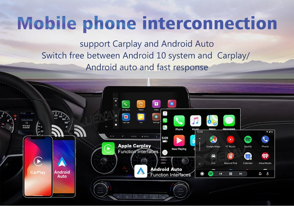 Поддержка Carplay и Android автоматическое переключение между системой Android 10 и системой Carplay/ Android автоматическое и быстрое реагирование
