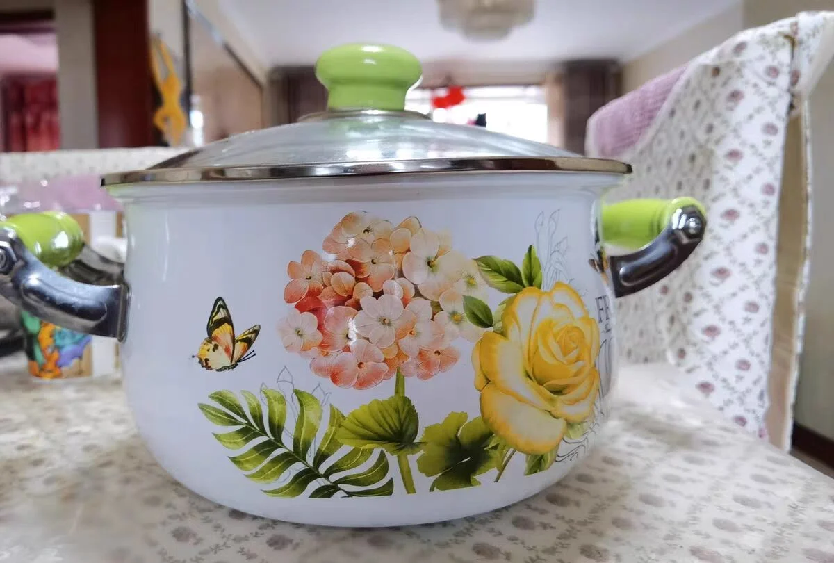 Эмалированный горшок, утолщенный бинауральный бытовой суп-горшок, тушеный горшок, горячий горшок, суп-горшок, китайская медицина, кастрюля для индукционной плиты, газовая плита