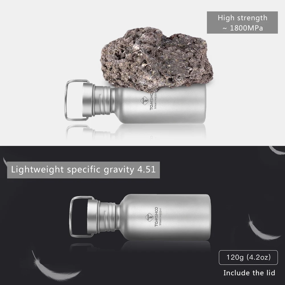 Бутылка для воды TOMSHOO изготовлена из коррозионно-стойкого титанового материала, легкая и прочная в использовании. Он имеет большую емкость 750 мл и отлично подходит для домашнего и наружного использования, например, для кемпинга, пеших прогулок, альпинизма и т. д. Чашка также изготовлена из титана, который устойчив к коррозии, чрезвычайно прочный и очень светильник.