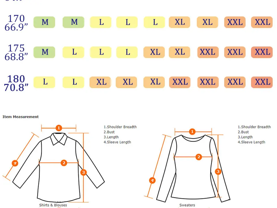 180 см/70,8 дюйма | L | L | XL | XL | XL | XXL | XXL | XXL | XXL | |