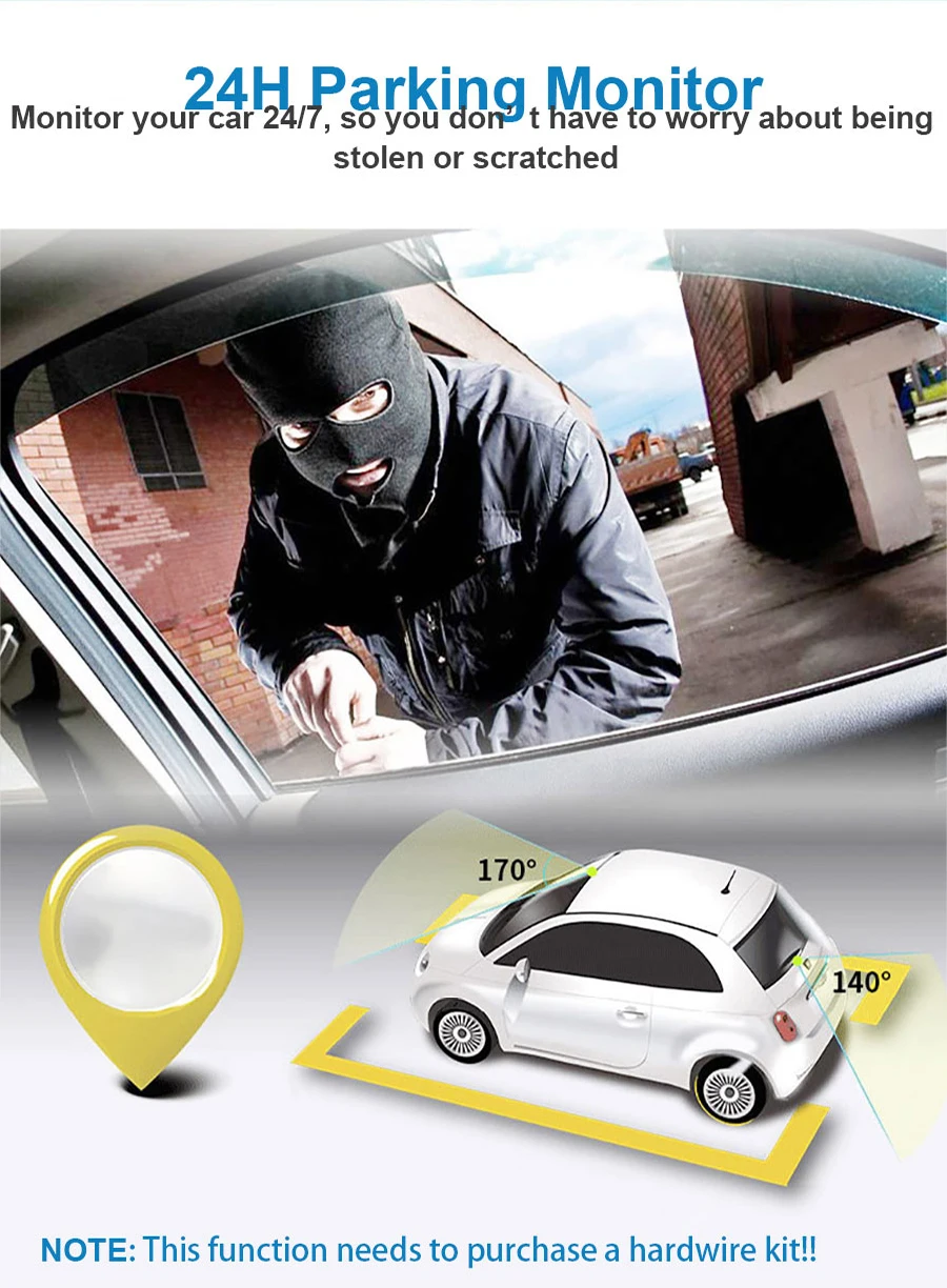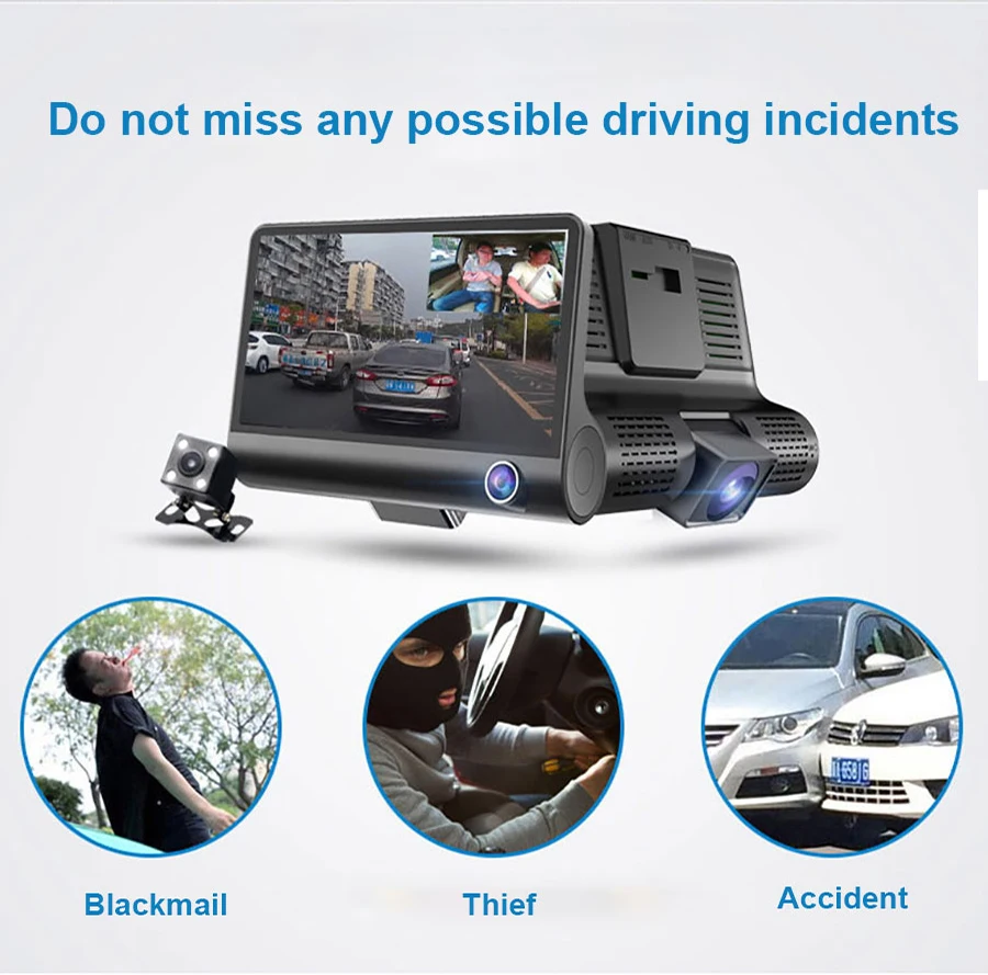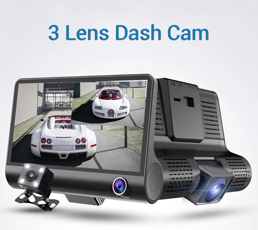 Автомобильный видеорегистратор DashCam, 4 дюйма, Full HD 1080P, 3 объектива, Автомобильный видеорегистратор, 170 °, g-сенсор, мониторинг парковки, камера ночного видения