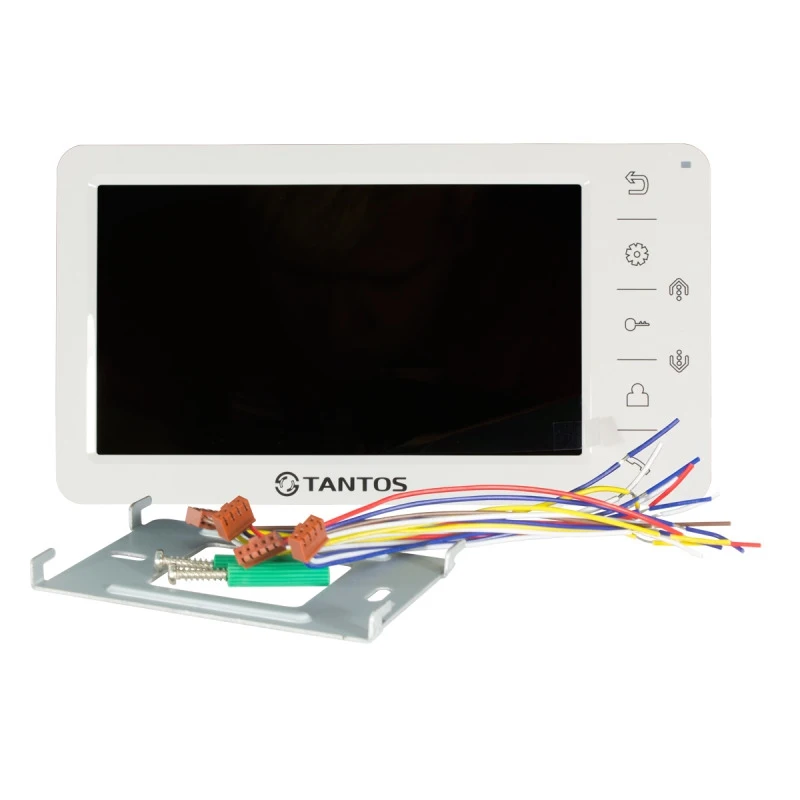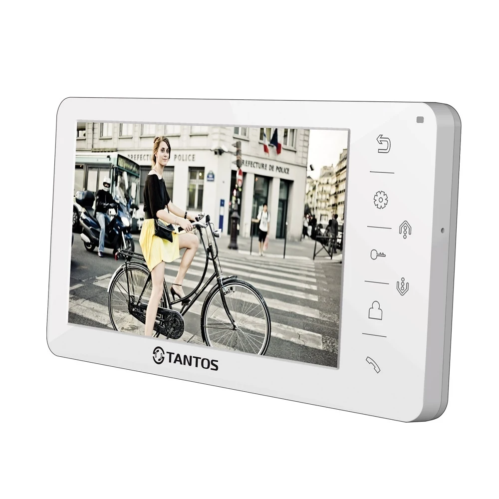 Tantos Amelie HD (White) NEW Видеодомофон с 7 дюймовым дисплеем (управление кнопками на консоли) Русифицированное экранное меню, простое управление функциями Интерком, Возможности подключения: 4 монитора, 2 вызывные панели, 2 видеокамеры, питание: 100-240 В, 50-60 Гц (блок питания встроенный). (hands free)