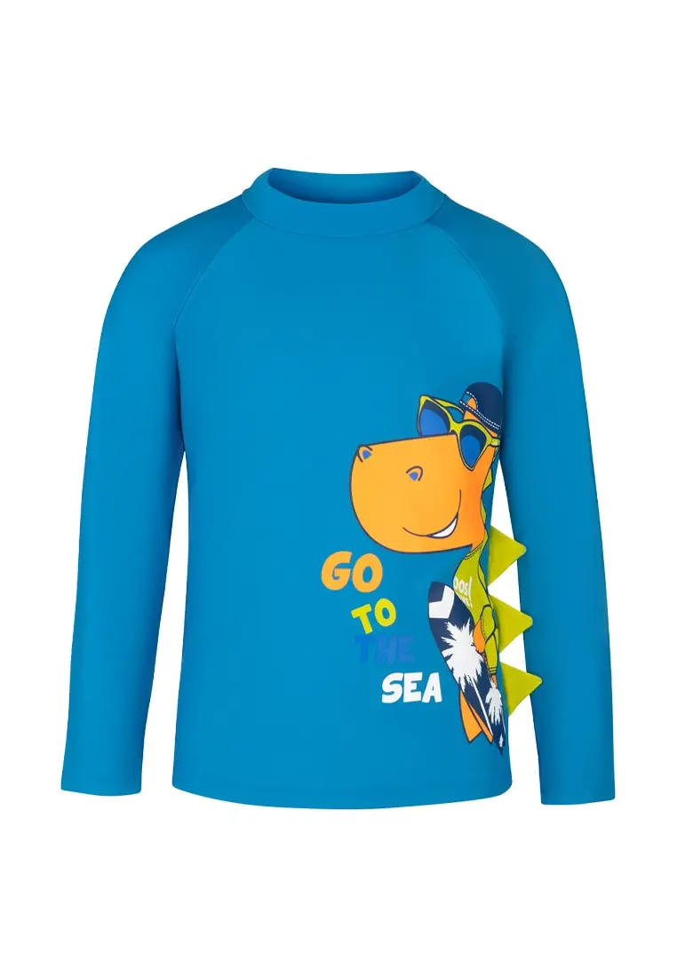 Яркий купальный лонгслив для мальчика. Крупный акцентный принт имеет продолжение в виде объемных деталей на боку, что придает модели дополнительную динамику и стиль. Выполнен из эластичной, быстросохнущей ткани с высокой степенью защиты от ультрафиолета SPF 50. Несмотря на деликатную структуру и мягкость, ткань обладает высокой прочностью и долго сохраняет свой цвет и форму под воздействием воды, соли, солнца, ветра, песка и стирок. Прорезиненный принт так же устойчив ко внешним воздействиям. Лонгслив универсален для любых идей вашего ребенка на отдыхе: купания, активных пляжных игр или постройке песочного замка, лежания на песке или неспешных прогулок с родителями под солнышком. В комплект к лонгсливу можно подобрать плавки или шорты из летней коллекции OLDOS.