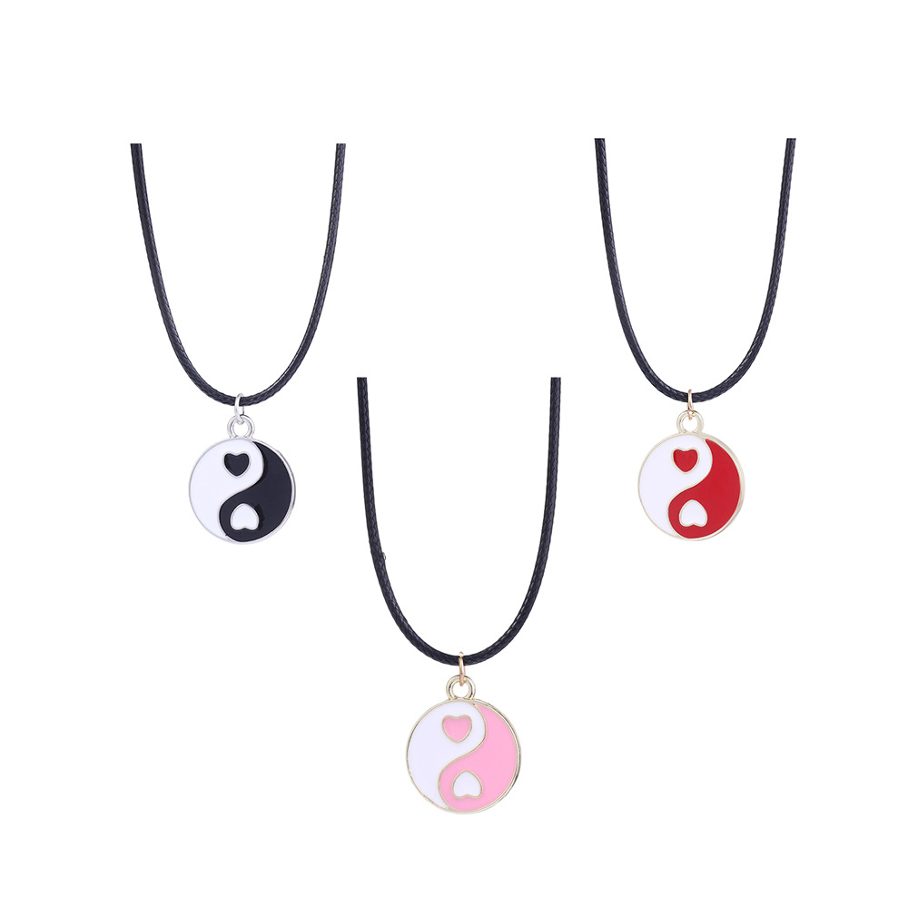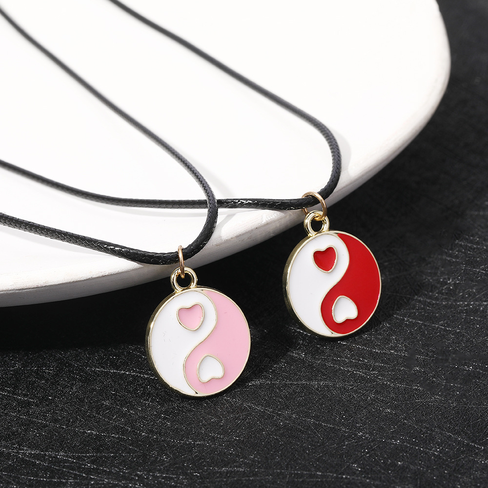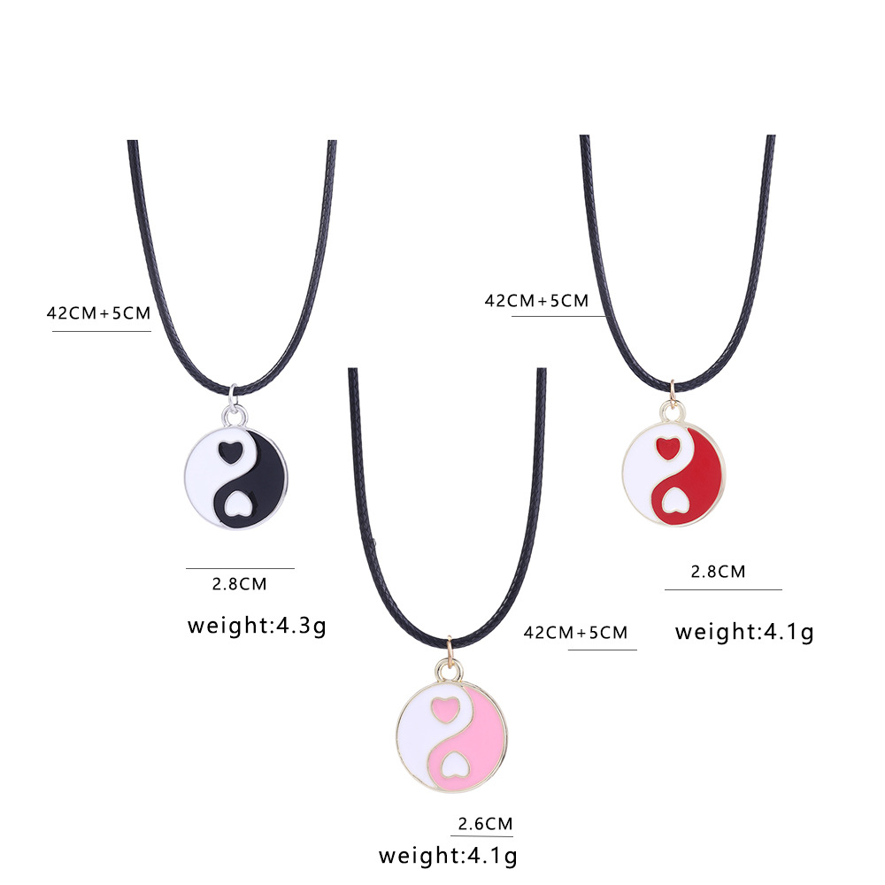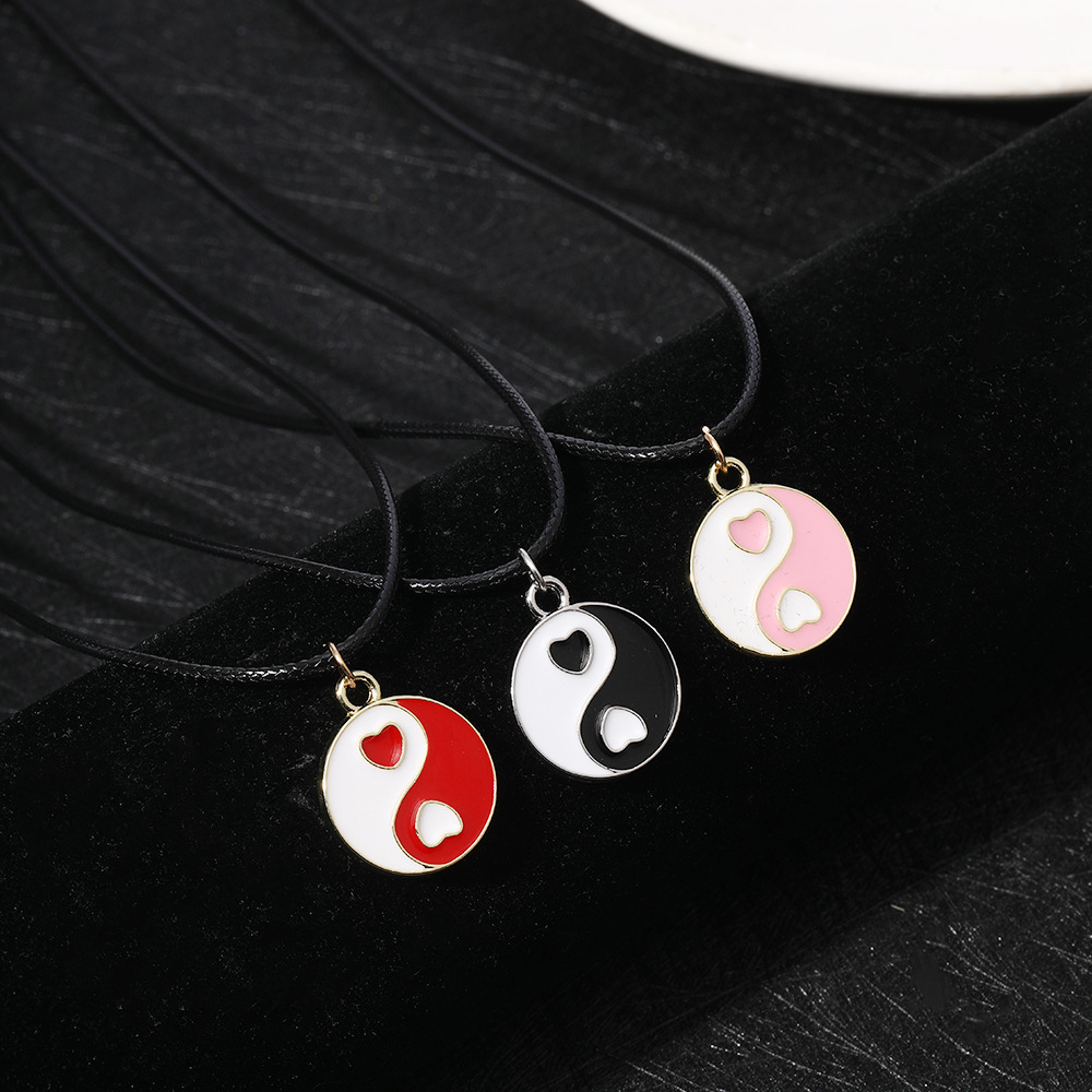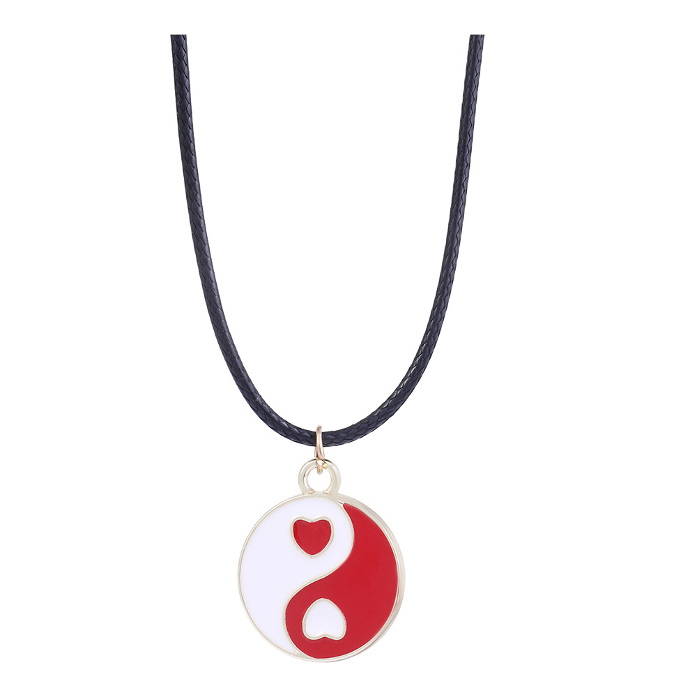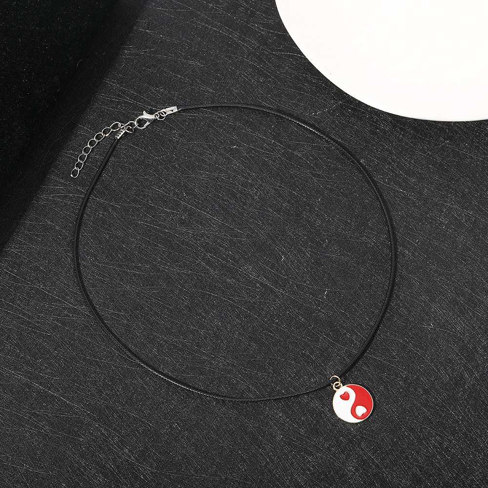 Красное черное модное ожерелье с сердечками Инь Янь круглая китайская Сплетня Тай Чи цепочка для ключиц цветная капельная двухцветная цепочка для свитера ожерелье