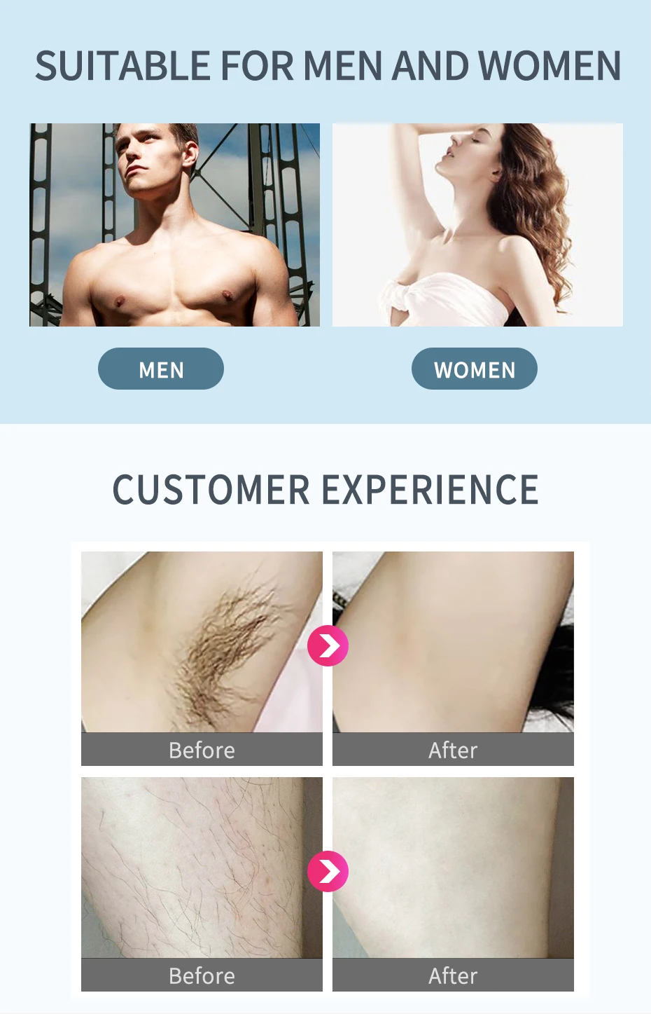 2. Постоянный и безболезненный: IPL работает внутри пор, разрушает волосы papilla, таким образом, обеспечивает постоянное удаление волос