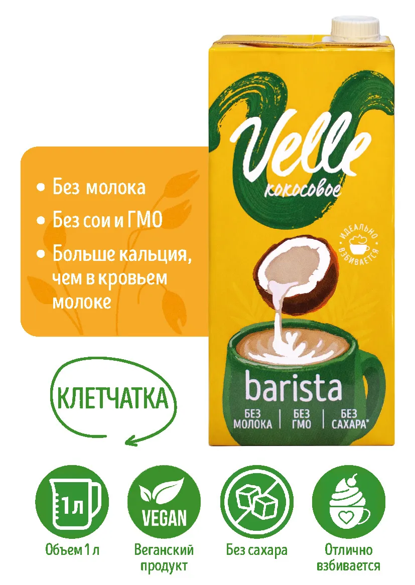 Velle Кокосовое молоко Barista - растительный продукт, приготовленный на кокосовой основе. Это замечательная альтернатива коровьему молоку. Обладает кокосовым ароматом, имеет белый цвет. Оно идеально подходит для приготовления кофе, прекрасно взбивается - пена получается текстурной из множества пузырьков, что позволит Barista сделать любой рисунок. Специальная линейка разработана с профессионалами экспертами barista. Подходит и для домашнего приготовления кофе.