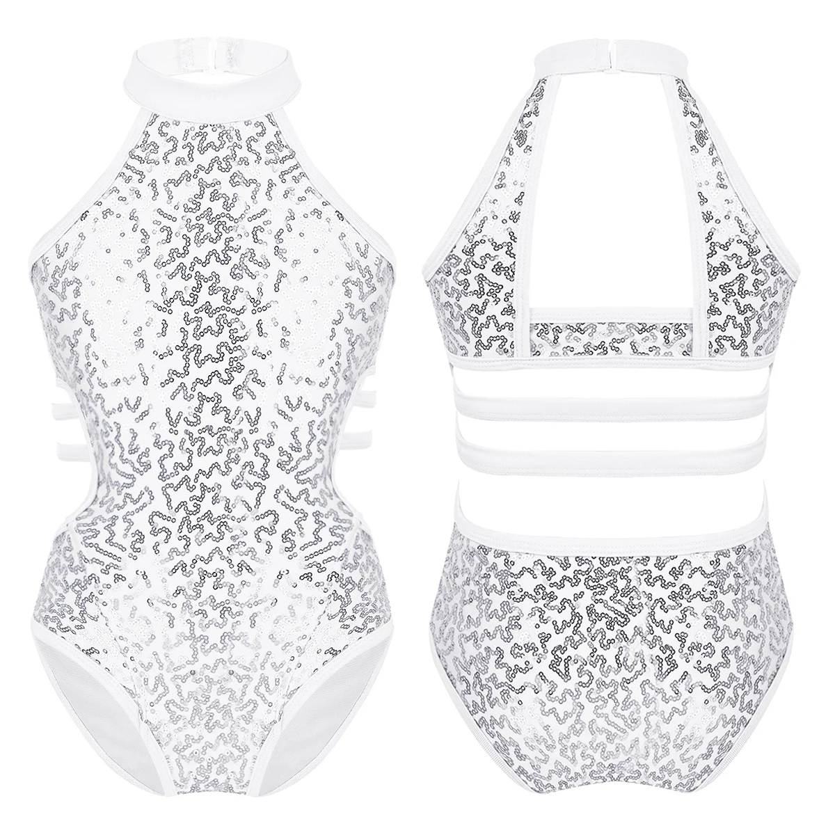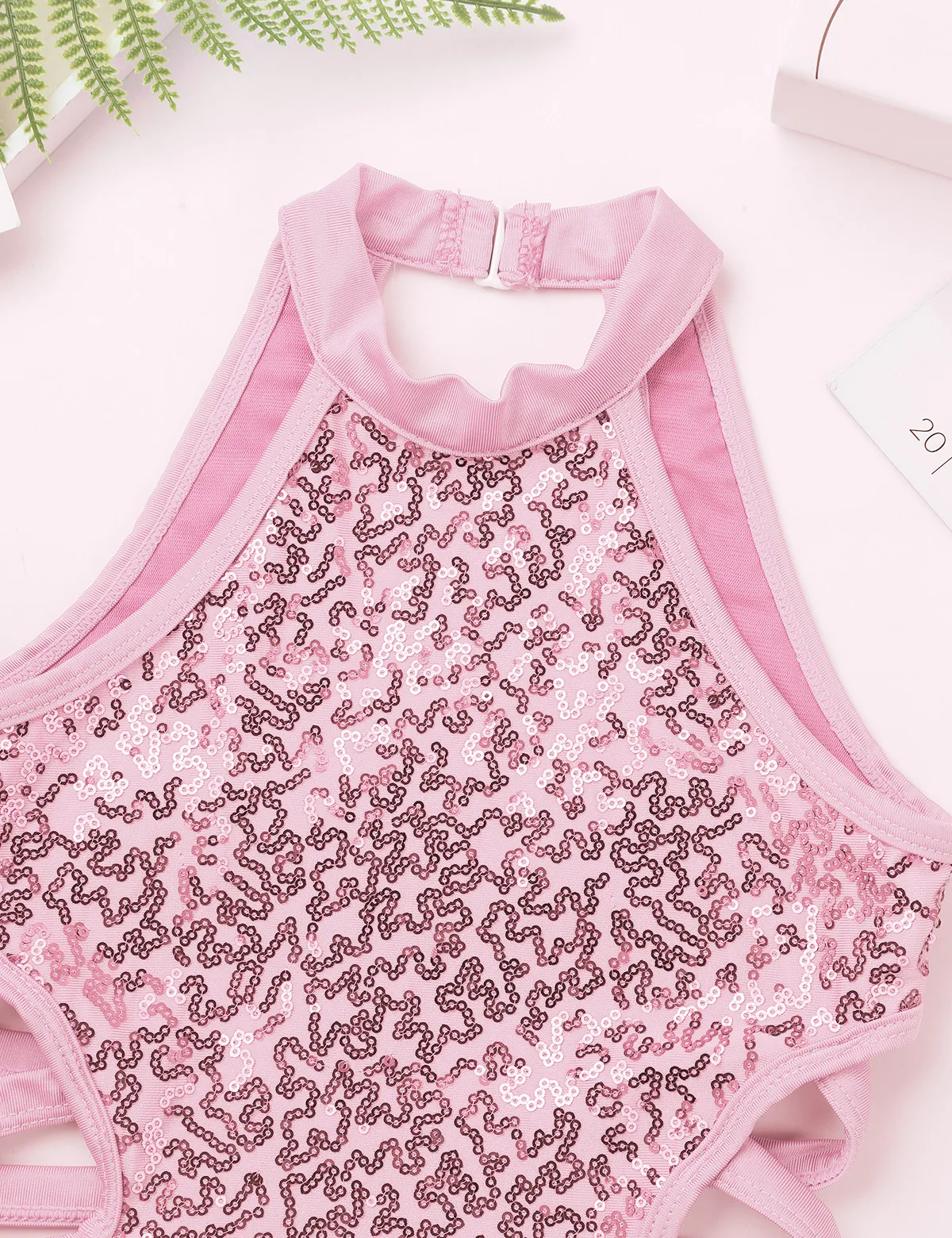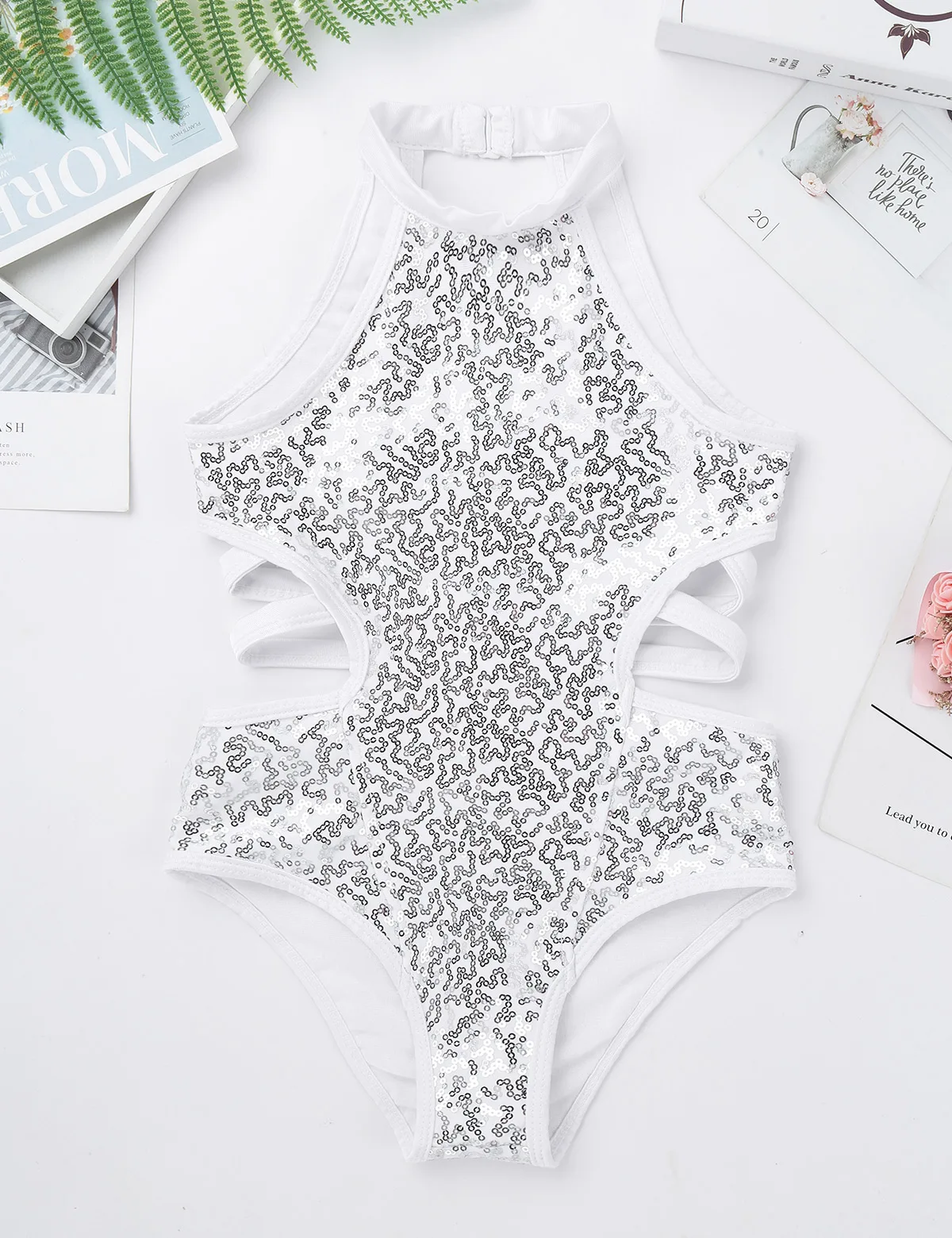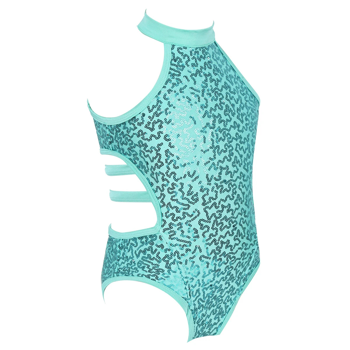 С вырезами сзади, с ремешком на талии сзади. Высокая линия ноги. Стильная и Ослепительная танцевальная одежда для вашей девочки.