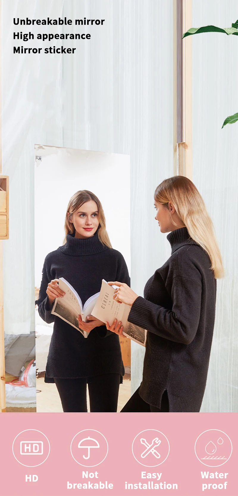 2. Если вы хотите использовать его в качестве зеркала, обязательно Наклейте его на гладкую и плоскую поверхность, как стекло