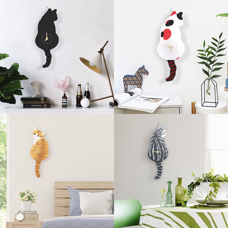 Креативные настенные часы с озорным котом и хвостом, тихие качающиеся часы для дома, спальни, гостиной, украшения для детской комнаты, декор 29EA
