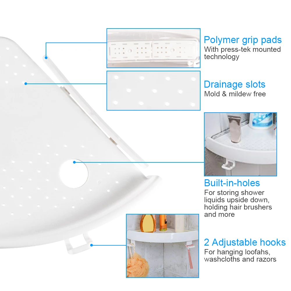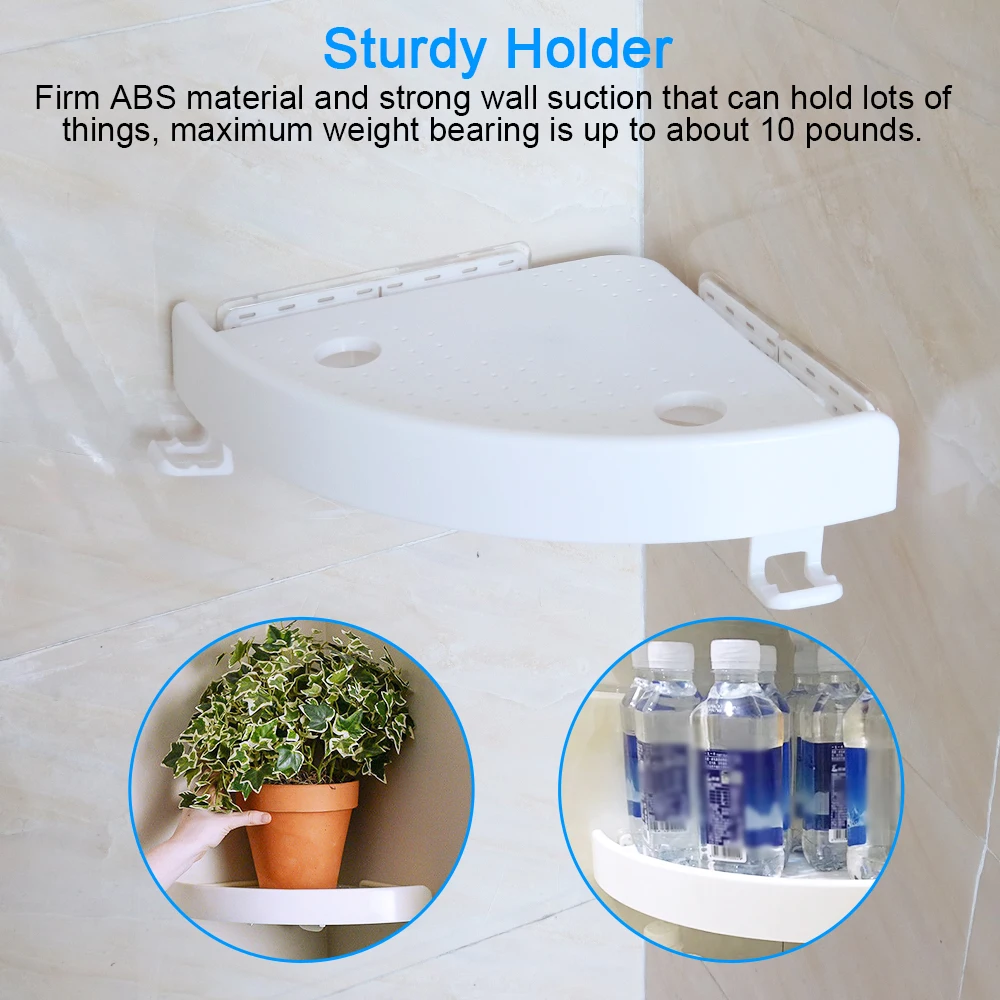 Прочный материал ABS и сильное всасывание стенок, которые могут держать много вещей, максимальный вес подшипника составляет около 10 фунтов. Он прочный и используется для длительного времени без деформации. И сливное отверстие держит полку вдали от плесени и плесени.