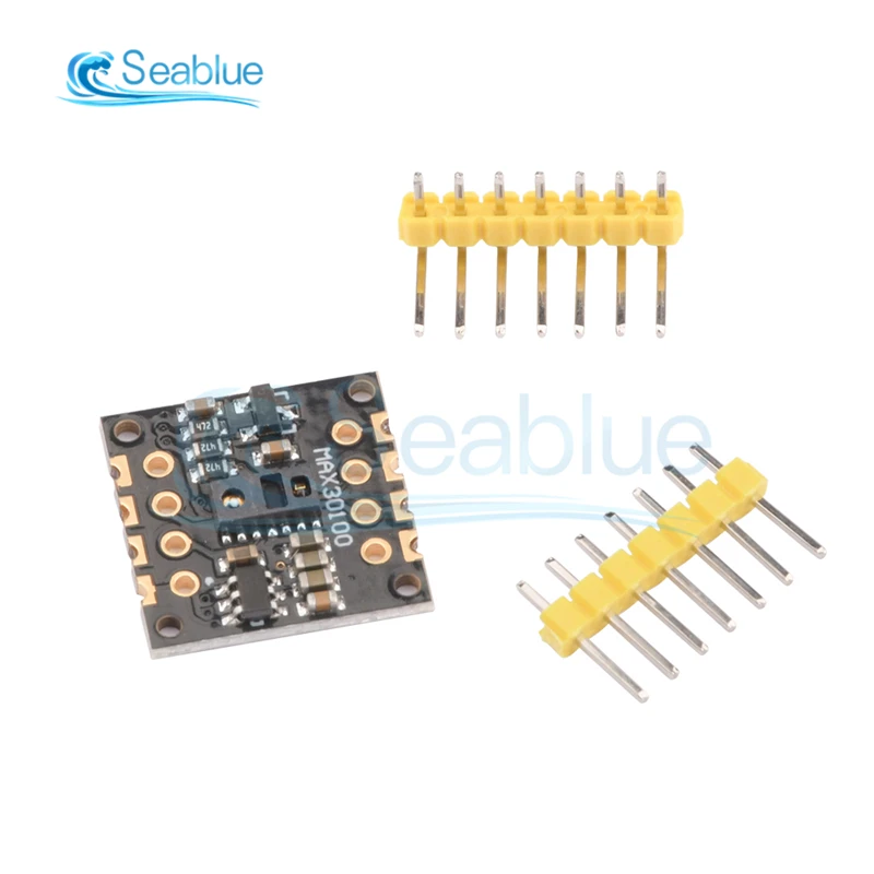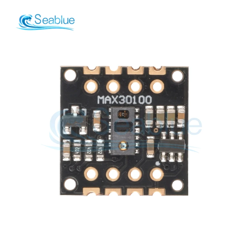 This is a breakout board for pulse oximetry and heart rate monitoring sensors based on MAX30100. The MAX30100 sensor combines two LEDs, a photodetector, optimized optics, and low-noise analog signal processing to detect pulse oximetry and heart rate signals.