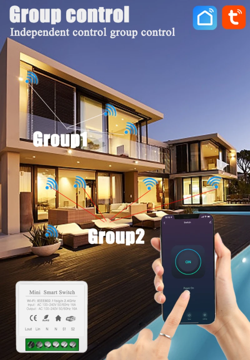 Управляйте включением и выключением устройства, синхронизацией, обратным отсчетом и другими функциями через мобильный телефон. Пока мобильный телефон имеет сеть, модуль переключателя дома можно контролировать по всему миру.