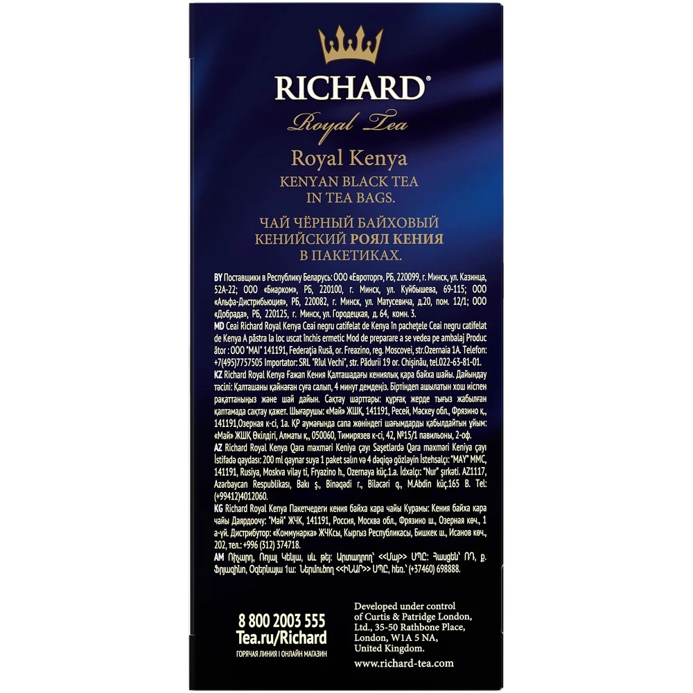 Черный кенийский чай Richard Royal Kenya с крепким насыщенным вкусом и тонким ароматом. Попробуйте! По рецептам королевского двора Richard Lord Grey