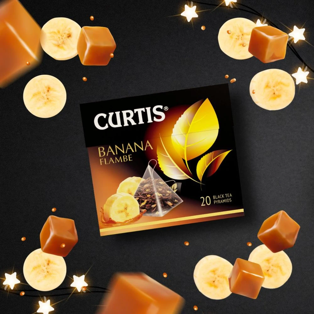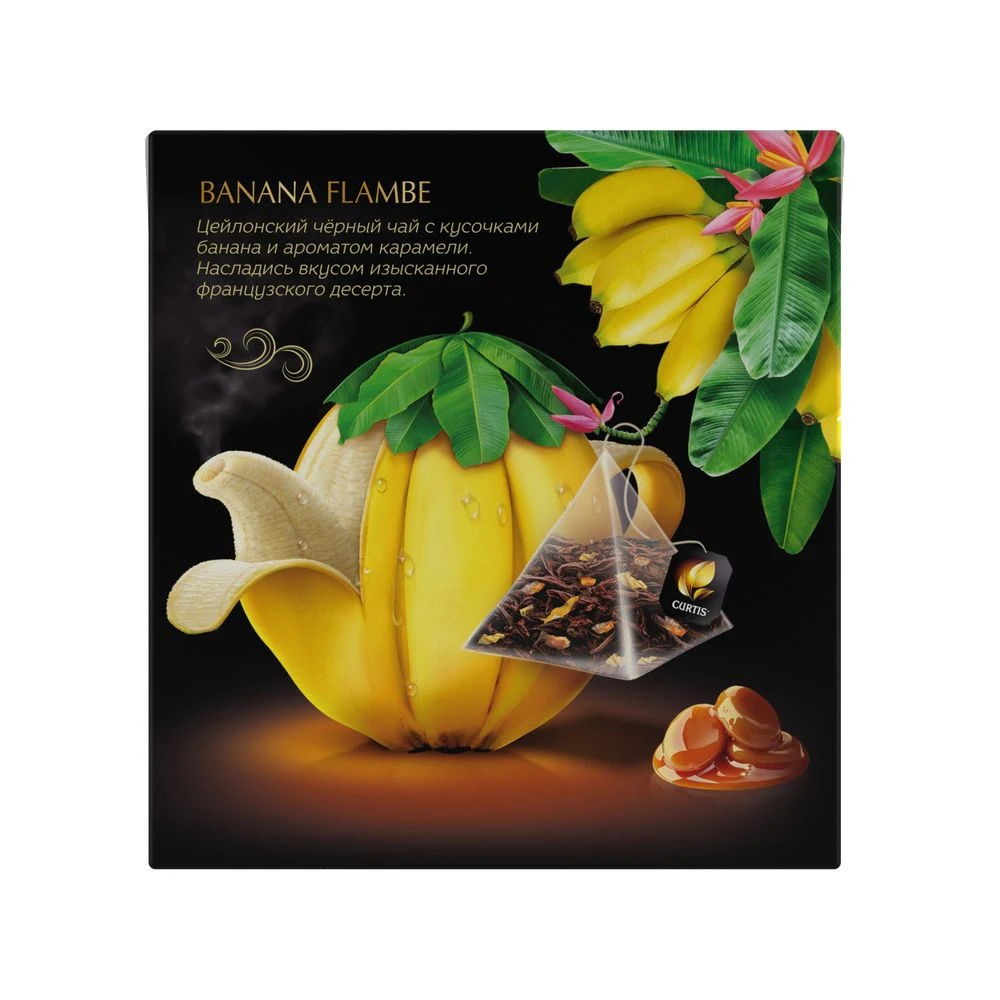 Цейлонский чёрный листовой чай в пирамидках с кусочками банана и ароматом карамели. Насладись вкусом изысканного французского десерта!