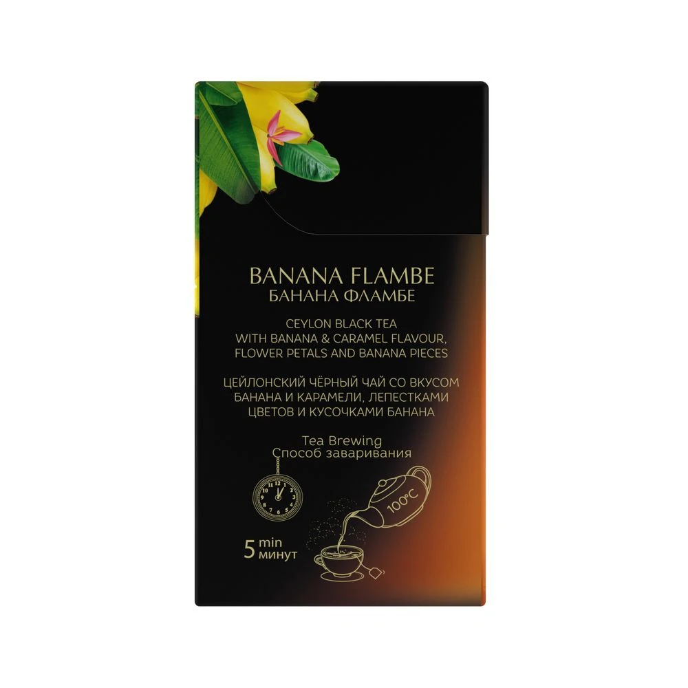 | Состав продукта | Черный листовой чай, ароматизатор банан и карамель |