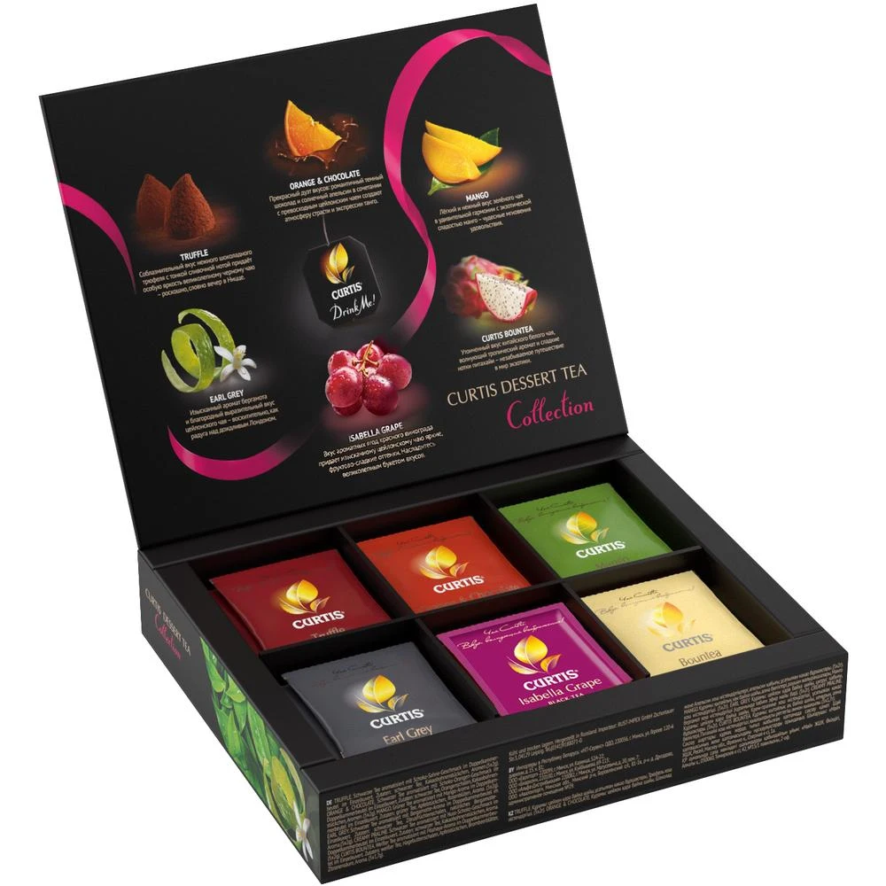 Подарочный набор с изысканными вкусами черного, зеленого и белого чая Curtis в пакетиках станет приятным сюрпризом по любому поводу. Подари наслаждение многогранными фруктового-ягодными и нежными десертными вкусами.