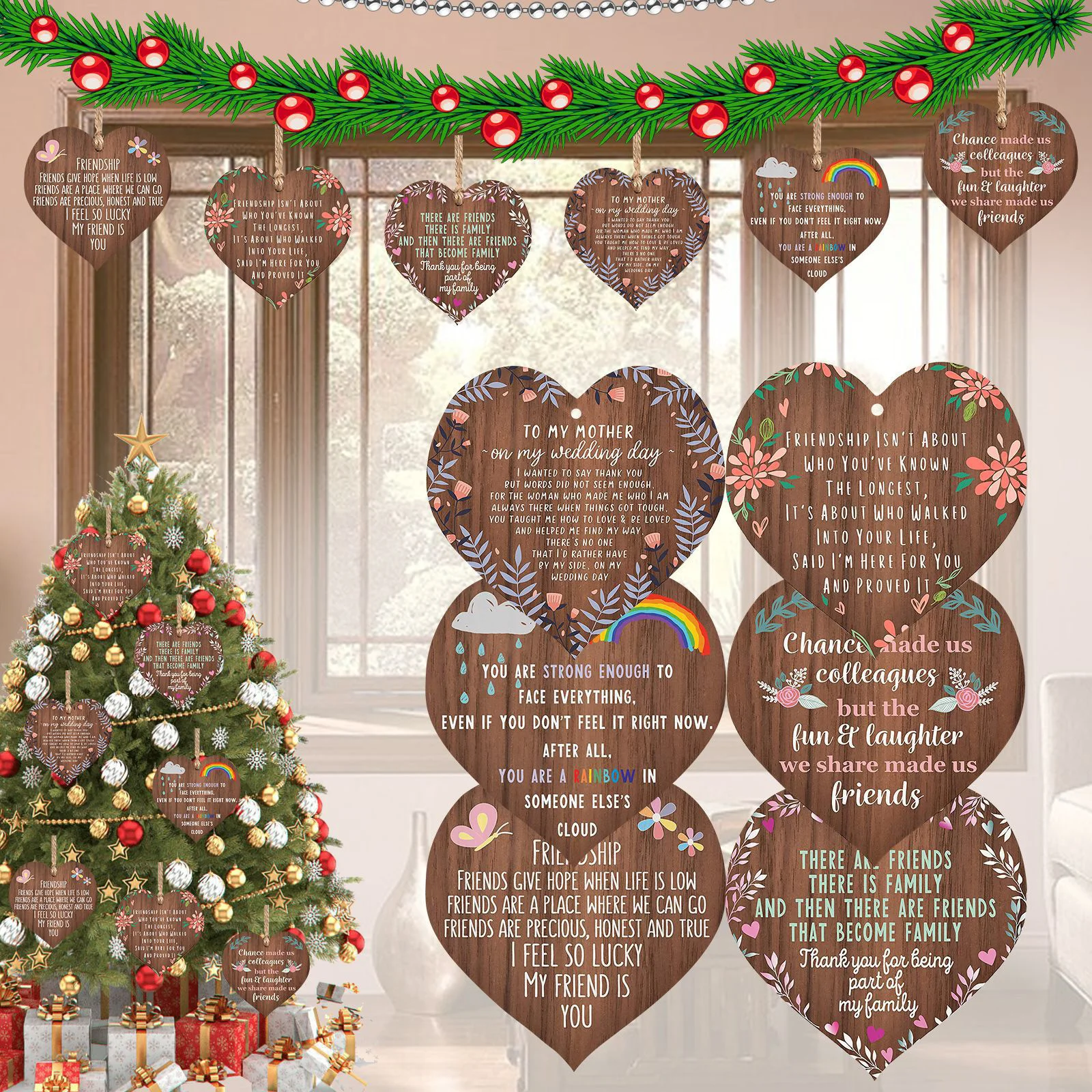 Характеристика: Изготовлен из экологически чистого древесного материала, прочный и долговечный светильник. Оснащен веревкой, его можно легко повесить на стену, дверную ручку или окно или повесить на рождественскую елку вашей семьи, чтобы добавить блеск к вашим рождественским украшениям! Карточка в форме сердца имеет дизайн вдохновляющих благ, которые могут быть подняты и вдохновлены. Всякий раз, когда вы видите украшения рождественской елки, это будет вдохновлять разговор и смех в вашей семье. Изысканный и праздничный, это идеальный Рождественский подарок для соседей, семьи и друзей. Спецификация: Название: декоративный кулон в форме сердца Материал: дерево Цвет: как показано Размер изделия: 100 мм * 100 мм * 5 мм/3,94 дюйма * 3,94 дюйма * 0,2 дюйма Вес нетто: 6 г Вес брутто: 6 г Подходящая сцена: Рождественское украшение Примечание: В связи с различиями мониторов и эффектами освещения реальный цвет товара может немного отличаться от цвета на фотографиях. Спасибо! Возможны отклонения в 1-2 мм вследствие измерений вручную.