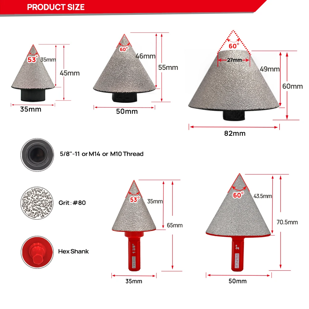 Product Name: Vacuum Brazed Diamond Chamfer bits Milling bits For enlarging, polishing and bevelling the exist holes