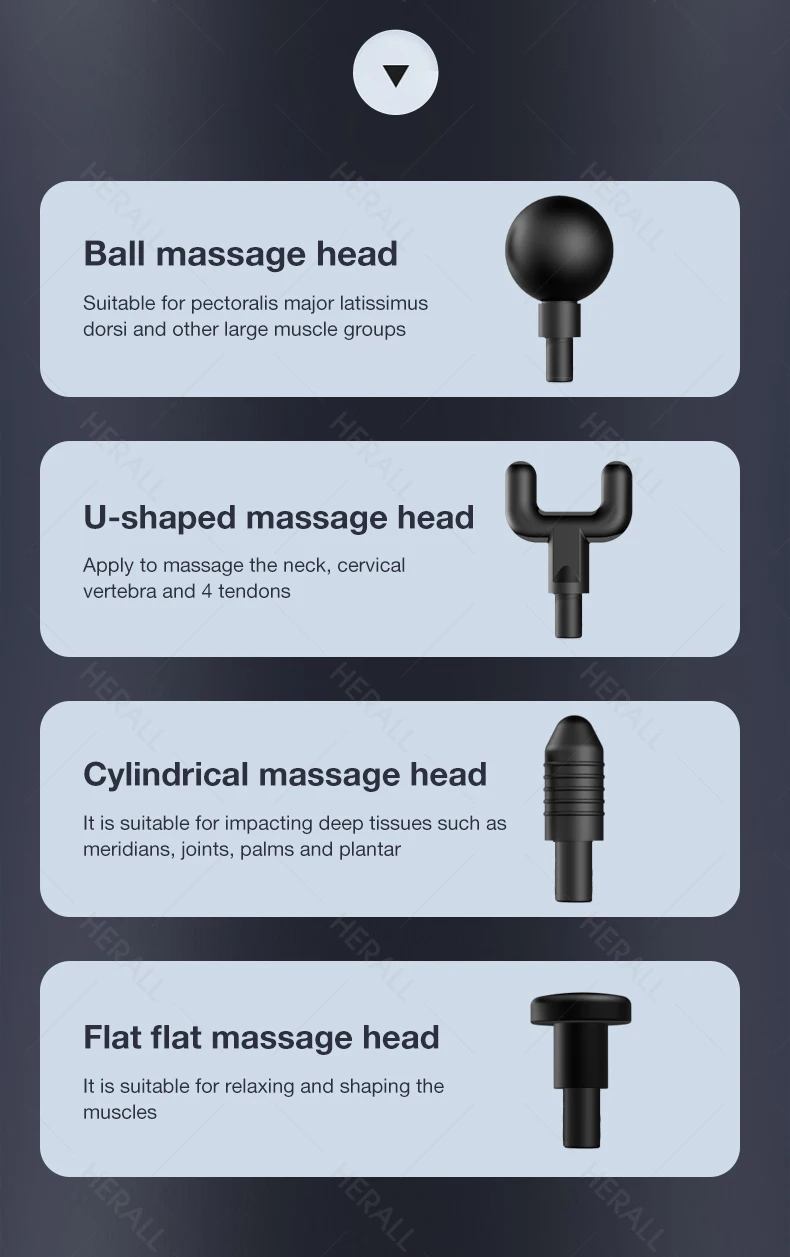 Пистолет для массажа мышц стимулирует и расслабляет фасцию и напряженные мышцы через глубокие и мощные вибрации