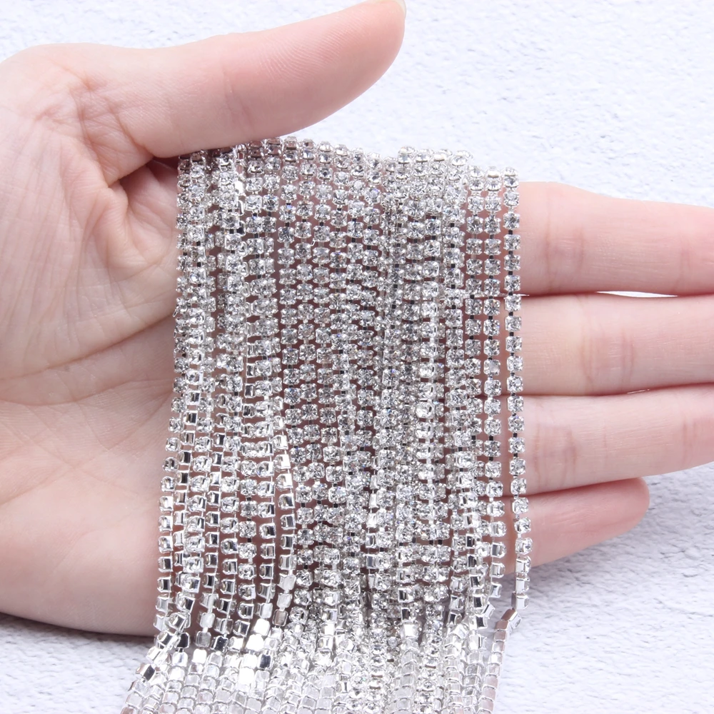 Стеклянные стразы, Серебряное основание, кристалл AB, длина 10 м, цепочки, чашка, цепь, заостренные назад, швейные камни, сделай сам, сумки для одежды
