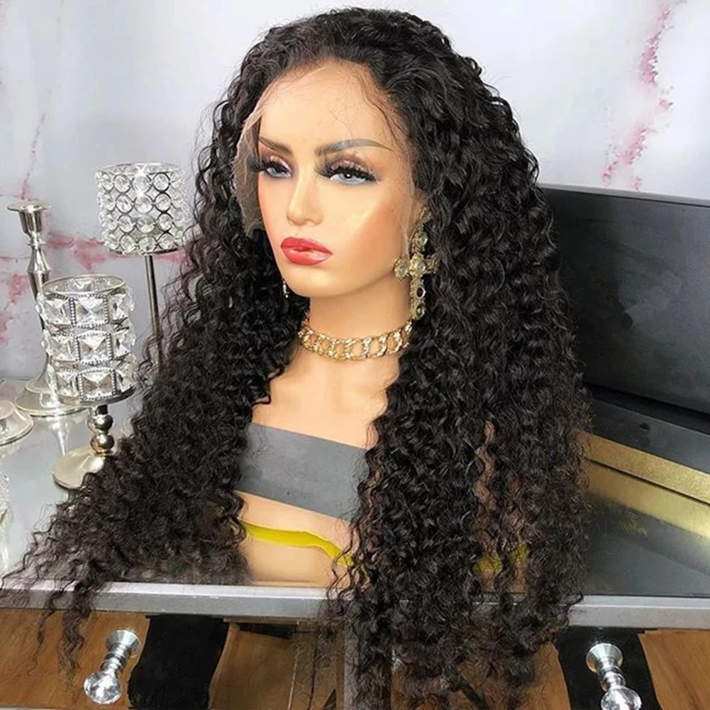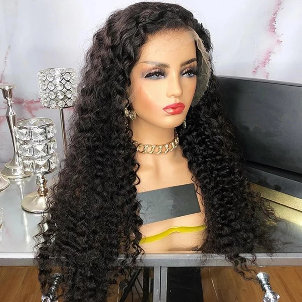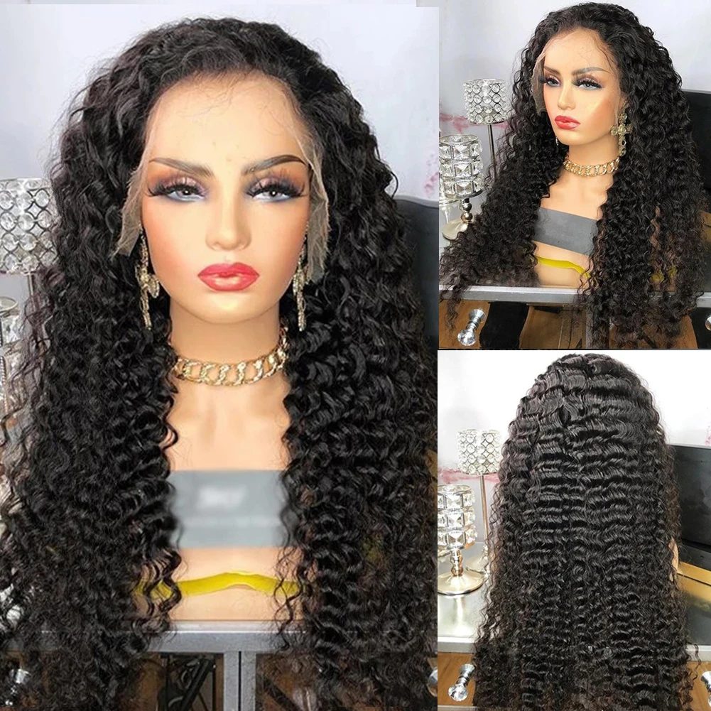 RONGDUOYI парик с глубоким кудрявым кружевом спереди парики без клея Косплей Длинные вьющиеся поддельные волосы парик шнурка для черных женщин черный цвет бесплатная часть