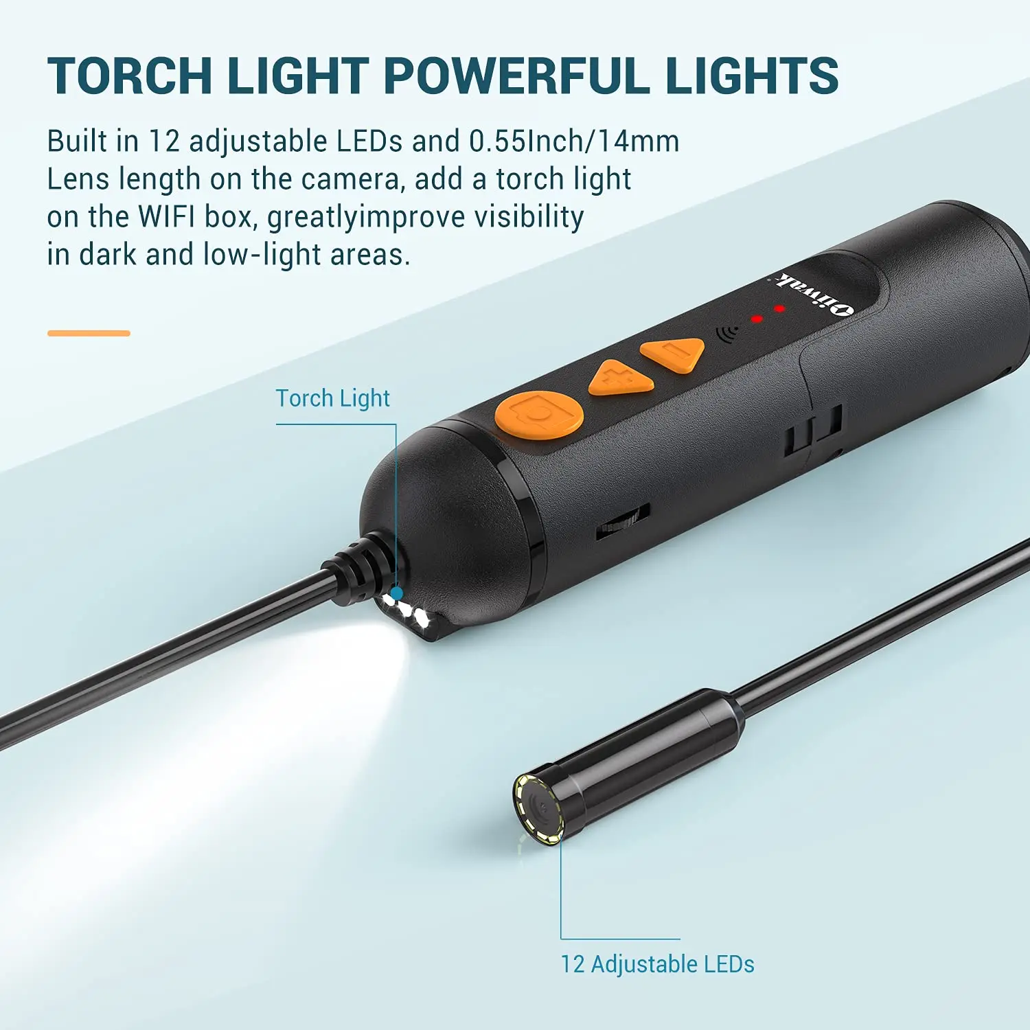 С регулируемым светодиодный свет, эндоскоп Wi-Fi может использоваться в темное время суток и узких местах для того, чтобы обеспечить четкость изображения и видео.