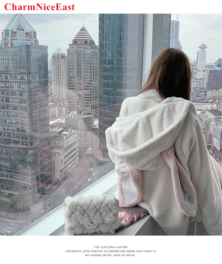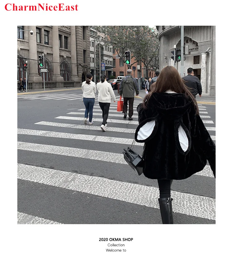 Осень-зима, готика, Харадзюку, Парные толстовки, милые заячьи ушки, черная верхняя одежда с капюшоном, женские милые корейские свободные теплые плюшевые пальто