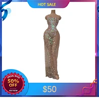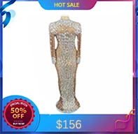 Сценическое платье для певицы с зеркальной золотой отделкой, сексуальным разрезом, глубоким вырезом на груди, для вечеринок, промоутеров, дня рождения, длинное платье ночного клуба хозяйке костюма.