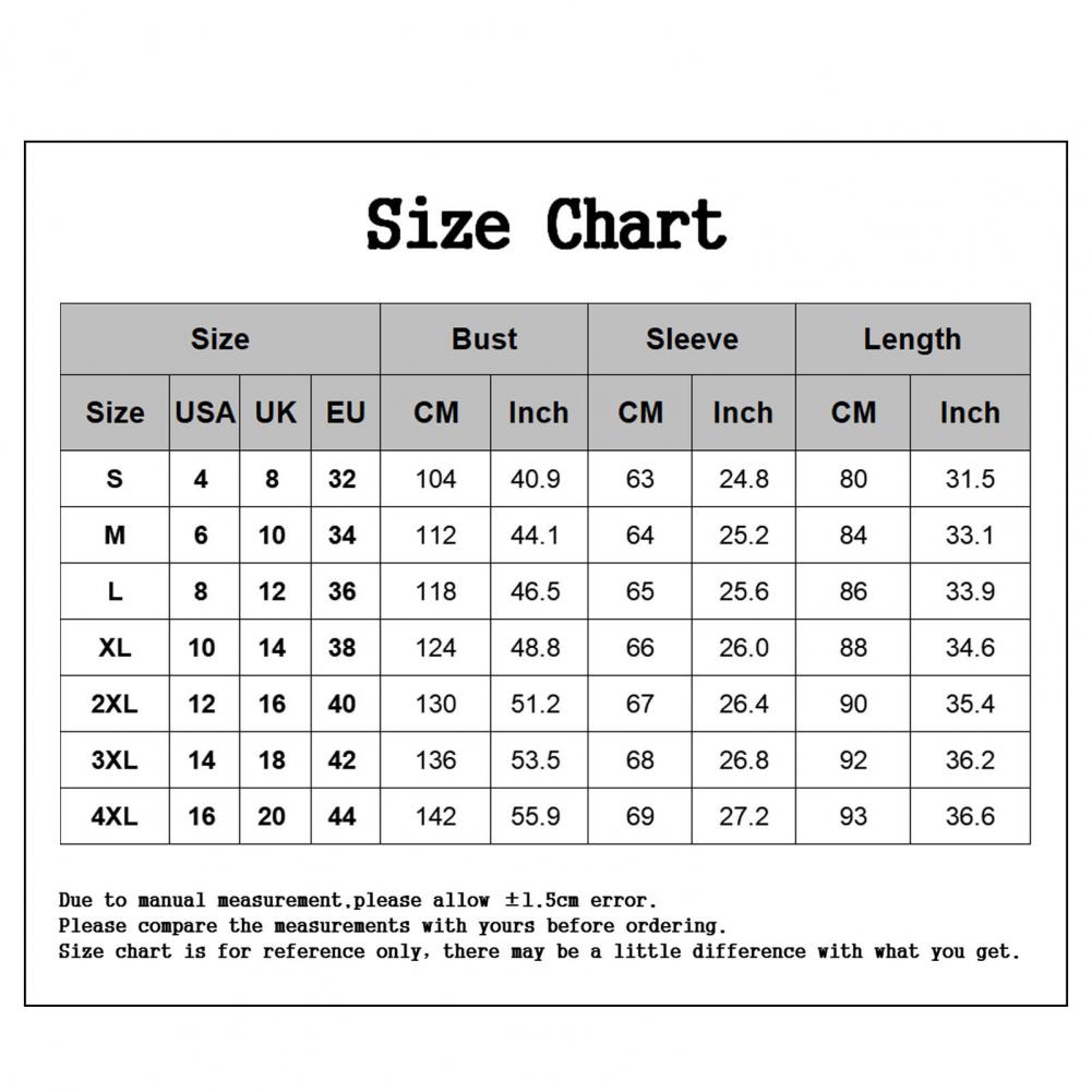 Размеры: 4XL, обхват груди: 142 см/55,9 ", плечо: 52 см/20,5", рукав: 69 см/27,2 ", Длина: 93 см/36,6" (прибл.)